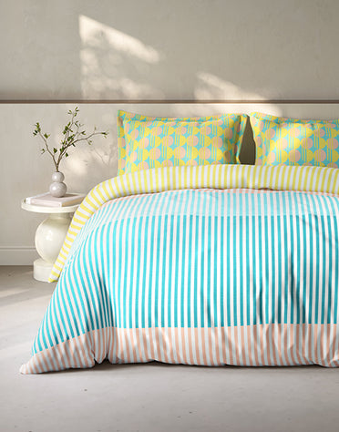 Bedsheets - Our range of bedsheet collections includes everything from single bedsheets, doublebedsheets, and fitted-bed sheets. The availability of bed sheets in different patterns, such as geometric, abstract, floral, etc., helps you find the perfect fit for your home. It also has a collection of comforting bed sheets for Disney and Marvel minion fans and not to forget the most important members of the family - the kids. Breathability and durability are your concerns, so SPACES have prioritised them.