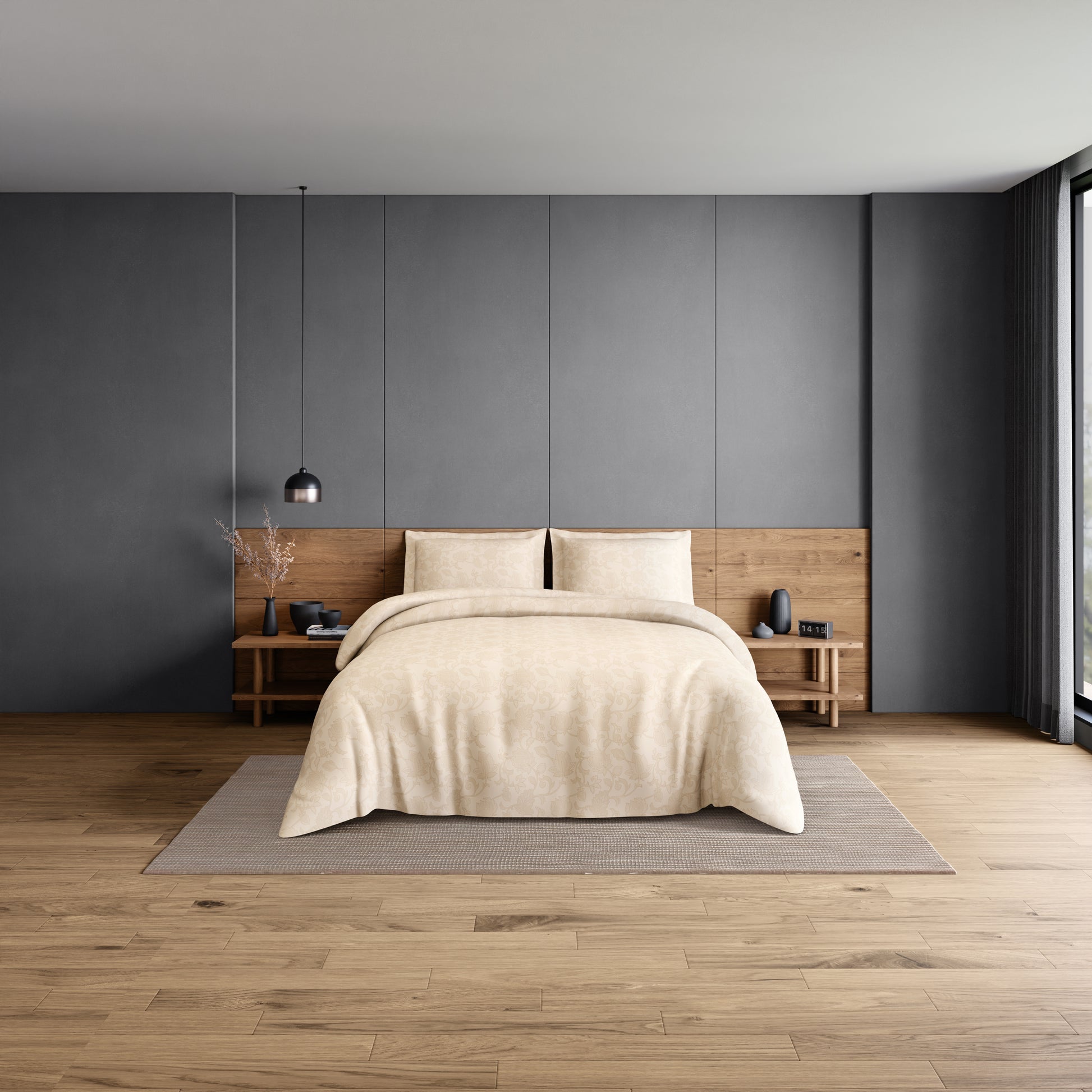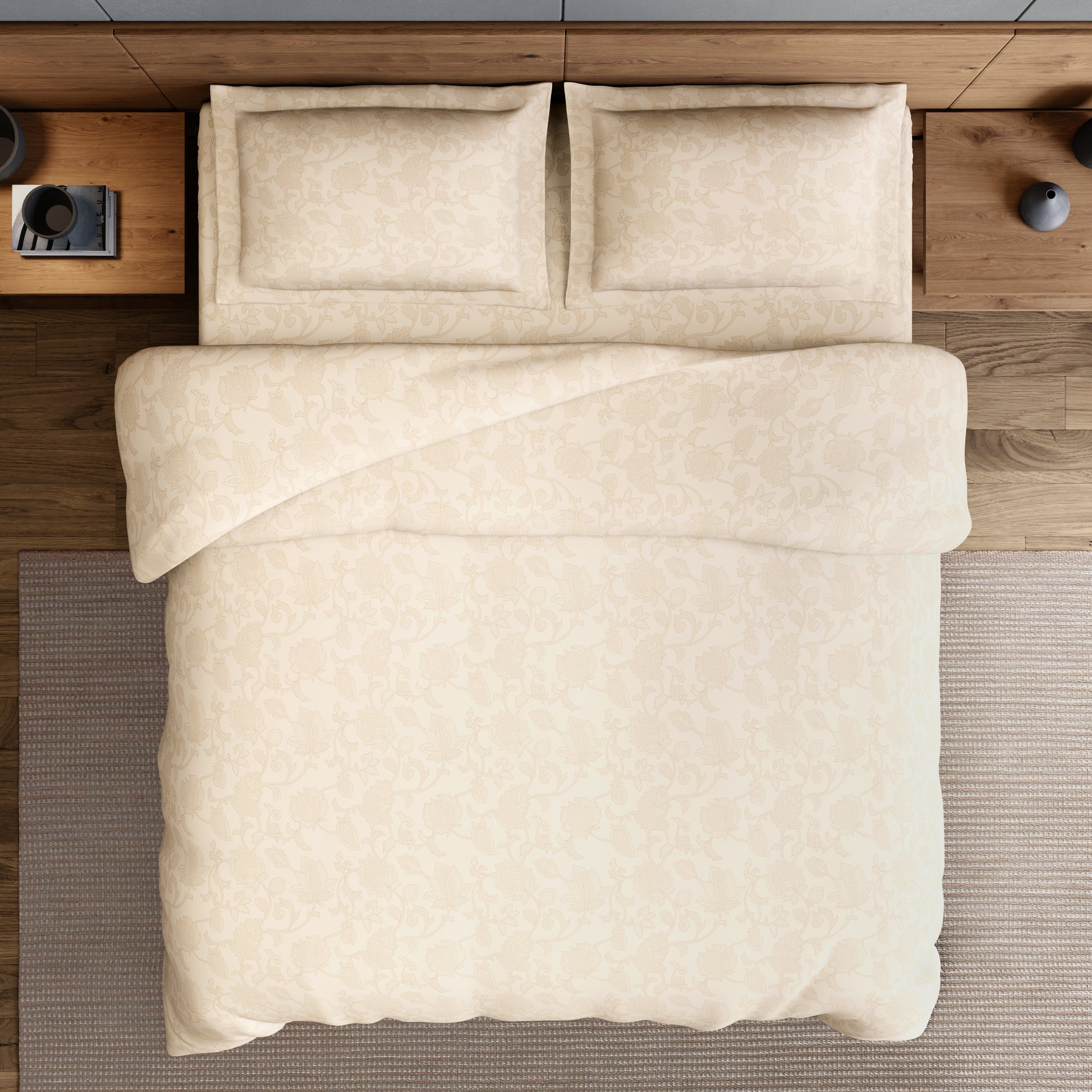 Elegance 100% Cotton Large Bedsheet, 300 TC, Floral, Beige