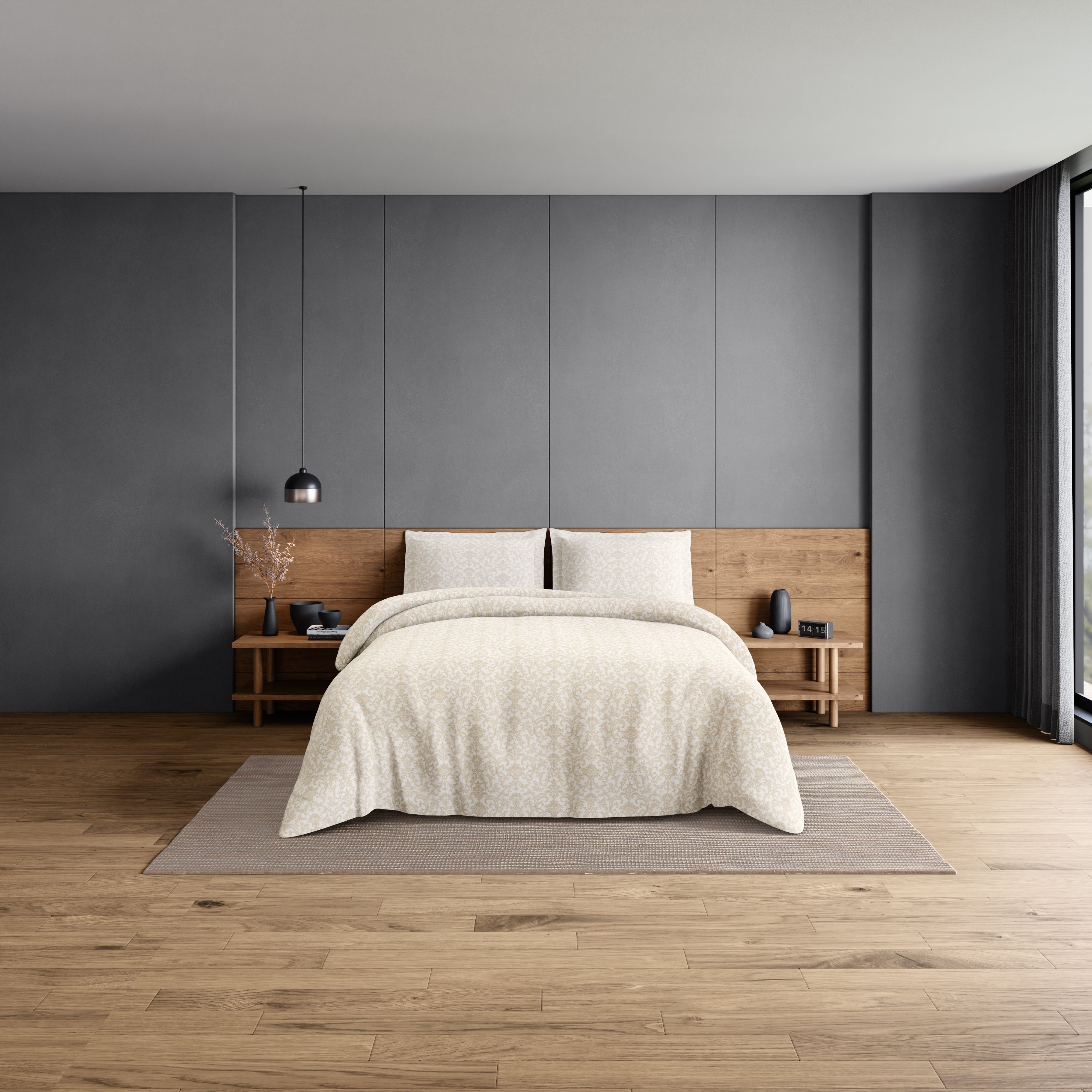 Elegance 100% Cotton Large Bedsheet, 300 TC, Geometric, Cream