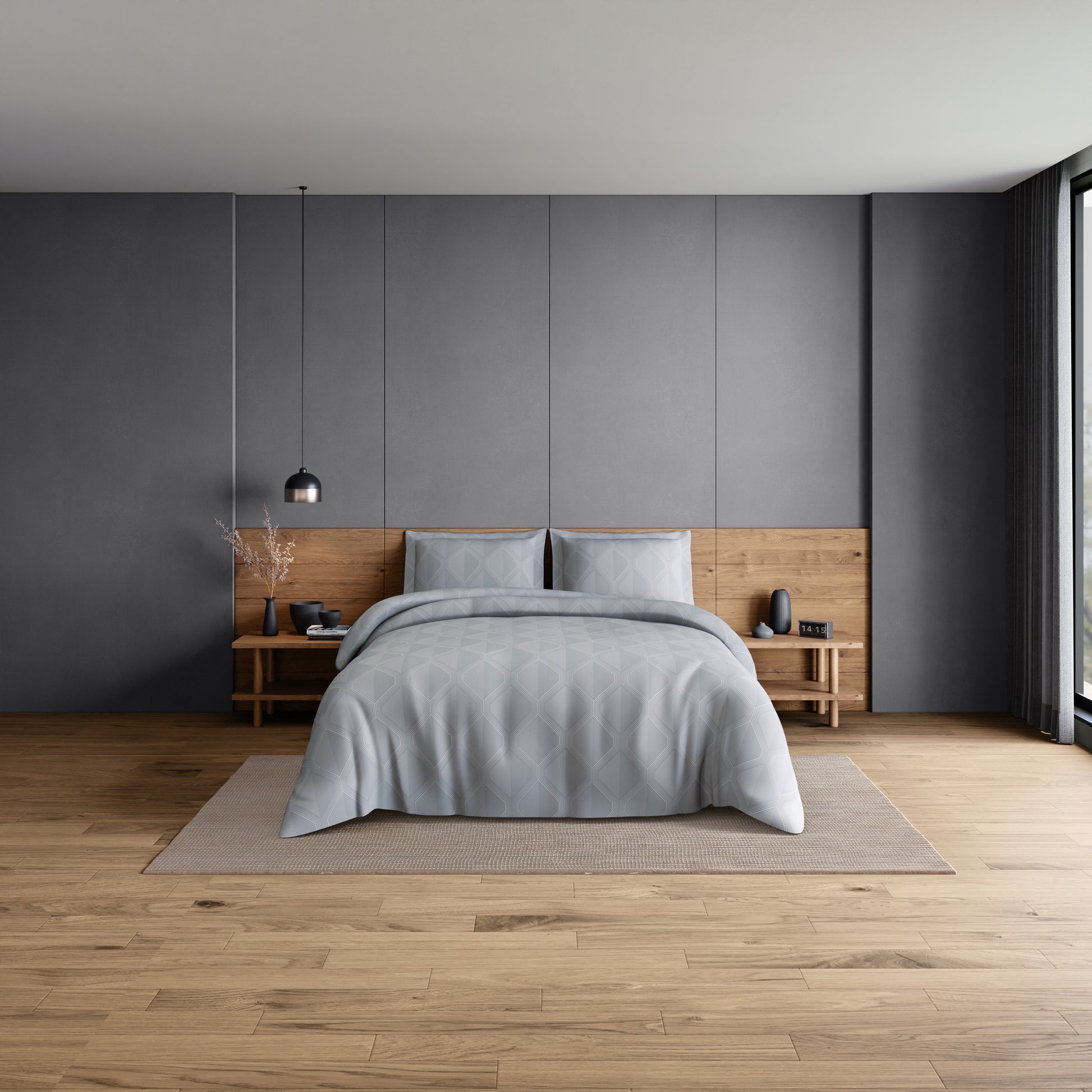 Elegance 100% Cotton Large Bedsheet, 300 TC, Geometric, Grey
