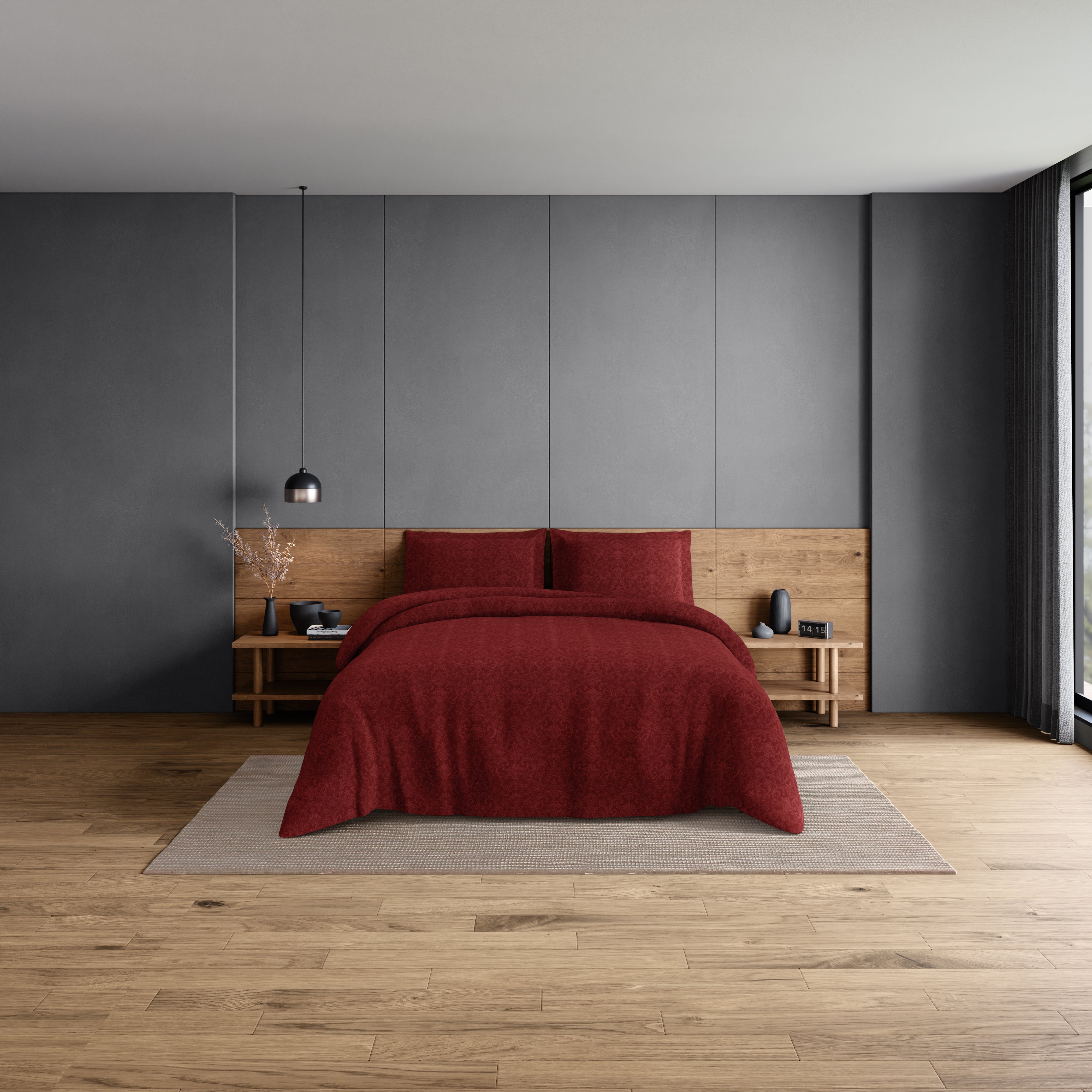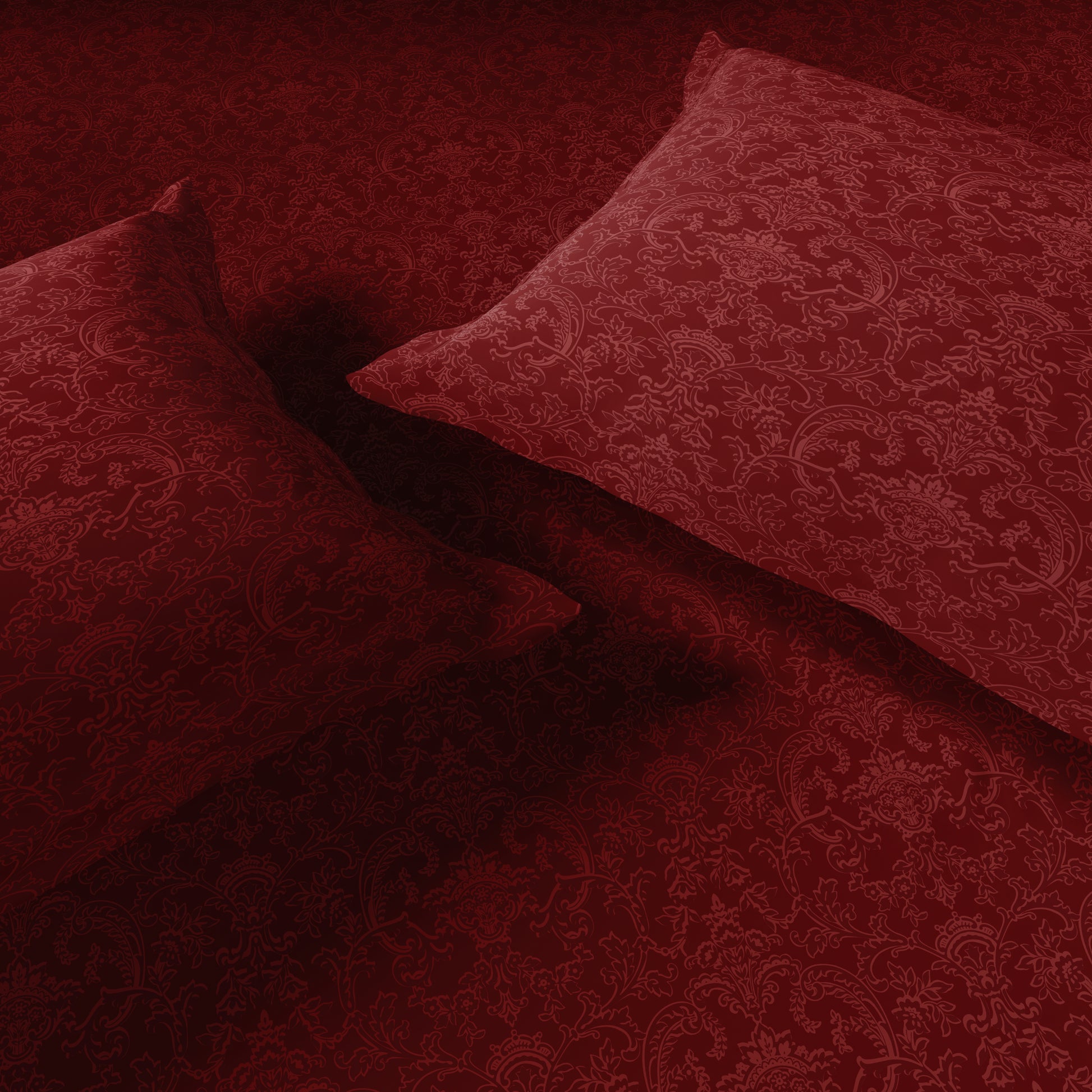 Elegance 100% Cotton Large Bedsheet, 300 TC, Ornate, Dark Red