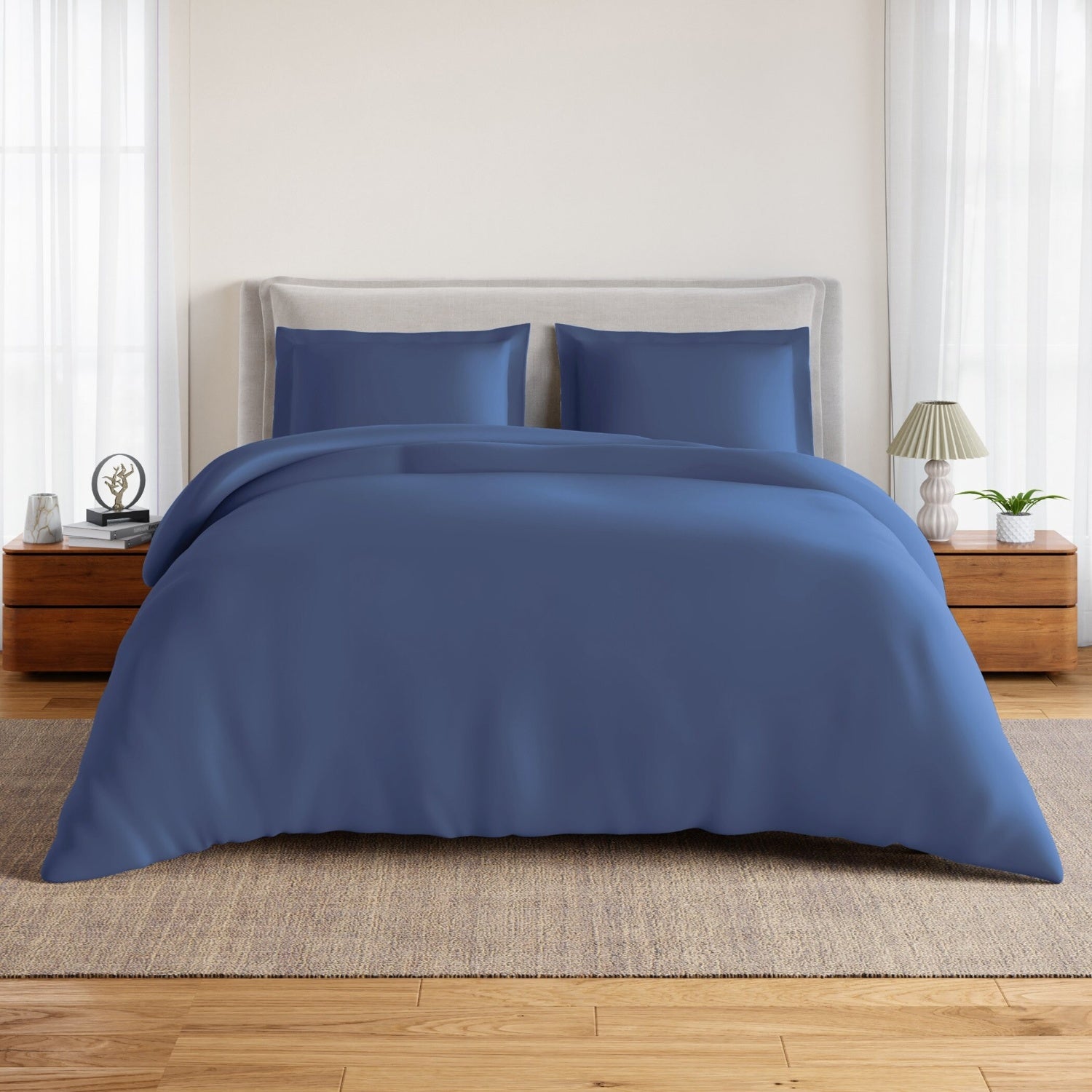 Sized at 183 × 198 + 30 cm (72 × 78 + 12 inches), and paired with two matching pillow covers (43 × 68 cm / 17 × 27 inches), this set offers a complete and coordinated bedding solution that looks as good as it feels — fresh, premium, and made for everyday luxury.