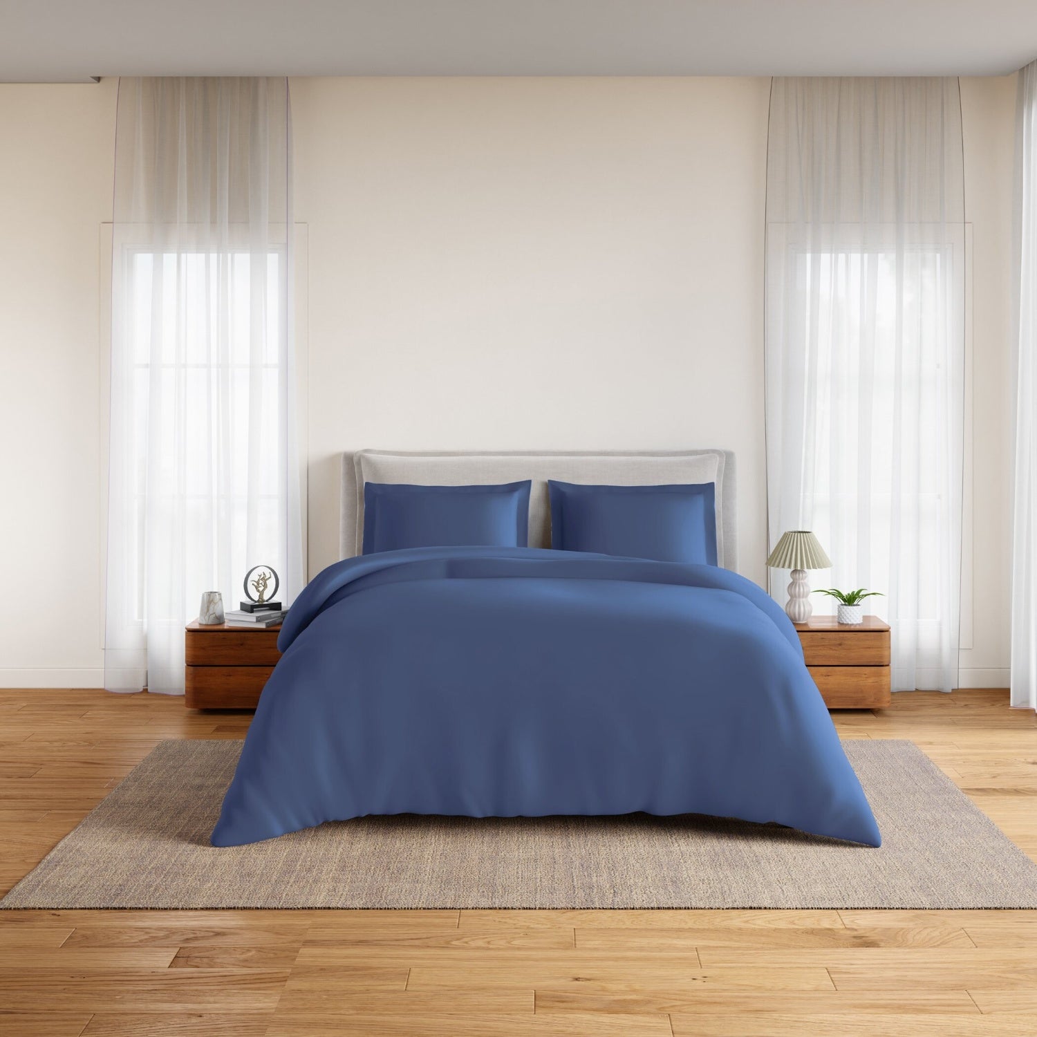 The Everyday Essential cotton fabric allows air to circulate freely, helping regulate temperature and moisture for uninterrupted sleep — especially ideal for warm climates and air-conditioned rooms. The percale weave gives the fabric a clean, hotel-like finish with just the right amount of crispness and softness combined.