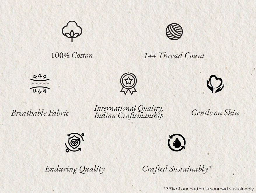 Spaces brings a blend of elegance and everyday comfort with the Linear Traced Double Bedsheet Set, thoughtfully crafted to enhance your bedroom with style and ease. Made from premium 100% Cotton and woven in a smooth 144 TC Percale weave, this bedsheet offers a soft, cool, and breathable feel that stays comfortable through every season. The fabric’s Easy-Care nature ensures minimal wrinkling and effortless maintenance, while its Skin Safe construction guarantees gentle, irritation-free use for the entire family.