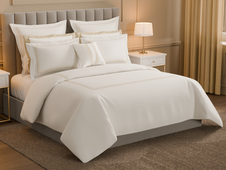 Luxury Aurora 100% Cotton Double Duvet Cover, 800 TC, Embroidered, Cream