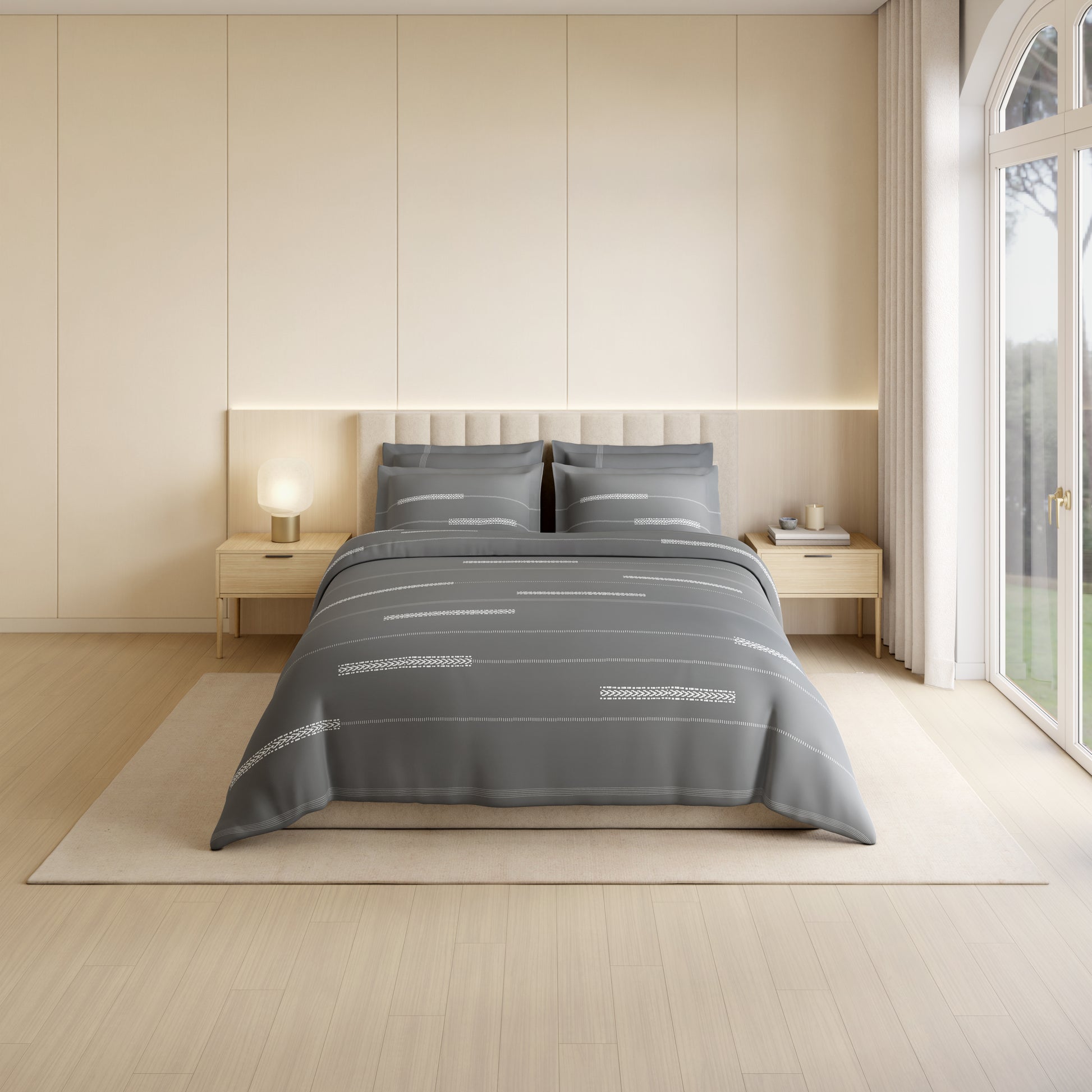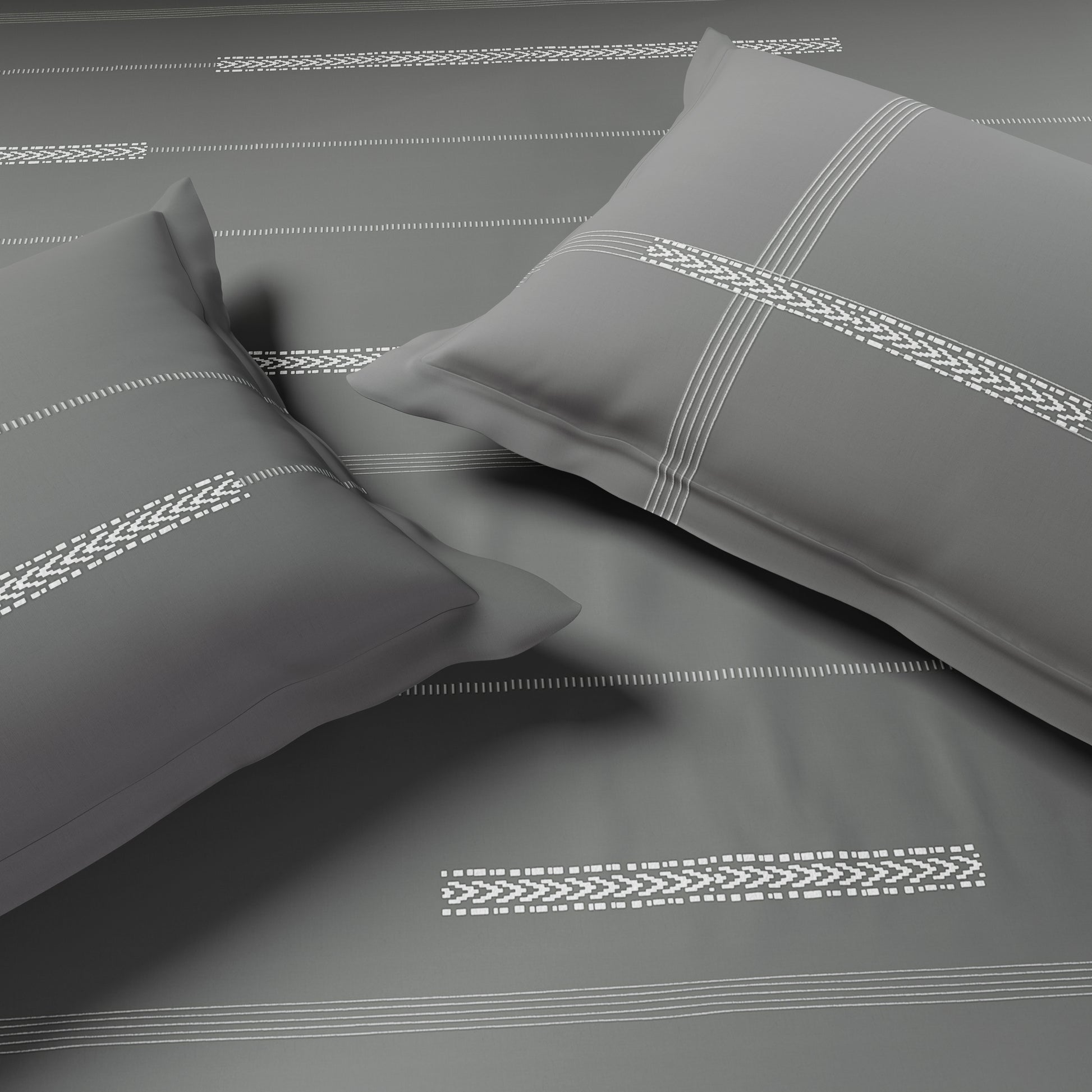 Luxury Loom Impressio 100% Egyptian Cotton Large Bedsheet, 350 TC, Embroidered, Grey