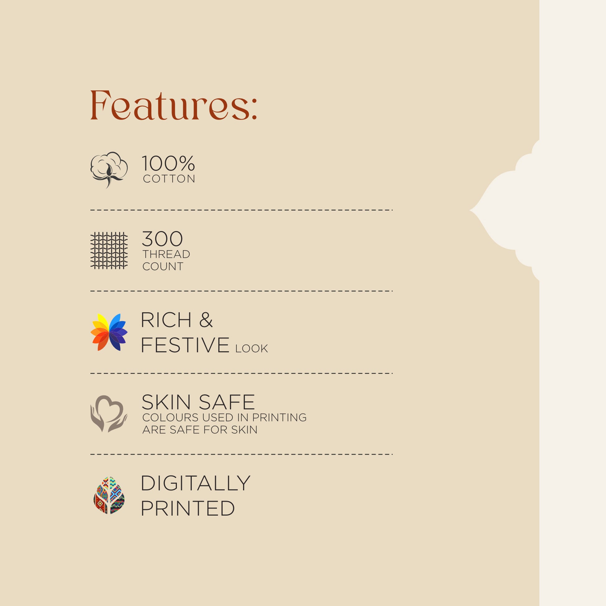 Dimensions : 274 Cm X 274 Cm/43 Cm X 68 Cm, Set Includes: 1 Large Bedsheet (274 × 274 cm) and 2 Pillow Covers (43 × 68 cm)