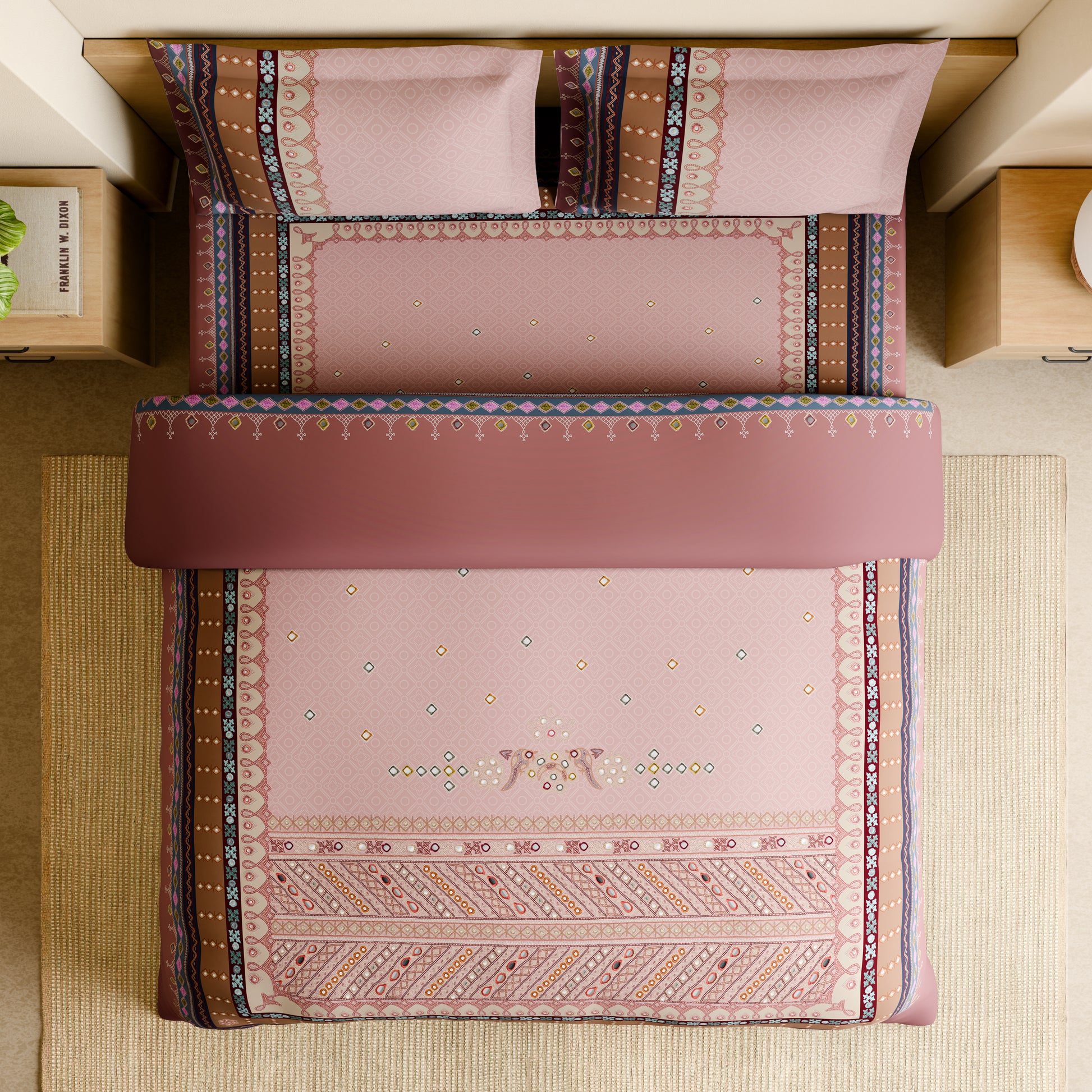 Rangana Shubha, 100% Cotton Large Bedsheet, 300 TC, Ornate, Heavenly Pink