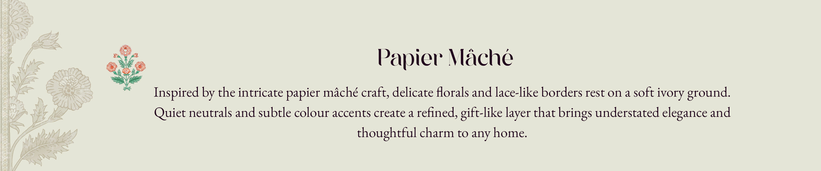 Styled in a rich Cream tone with a clean floral design, Paper Mache adds depth and sophistication to modern bedroom décor. The generously sized 274 × 274 cm bedsheet provides graceful coverage for large beds, while the set includes four matching pillow covers (43 × 68 cm) for a cohesive, polished look. Designed to be skin-safe and effortlessly comfortable, this collection blends premium fabric, timeless colour, and refined craftsmanship—making it an ideal choice for elevated everyday living.