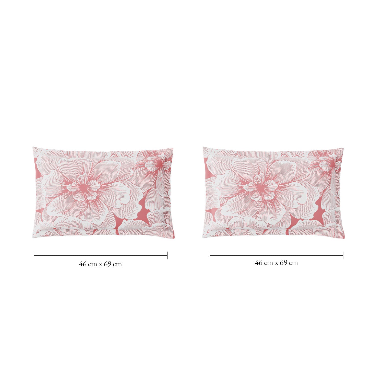 Spaces Flora 100% Cotton 144 TC Percale Floral Fitted Queen Sheet with 2 Pillow Covers, Blush