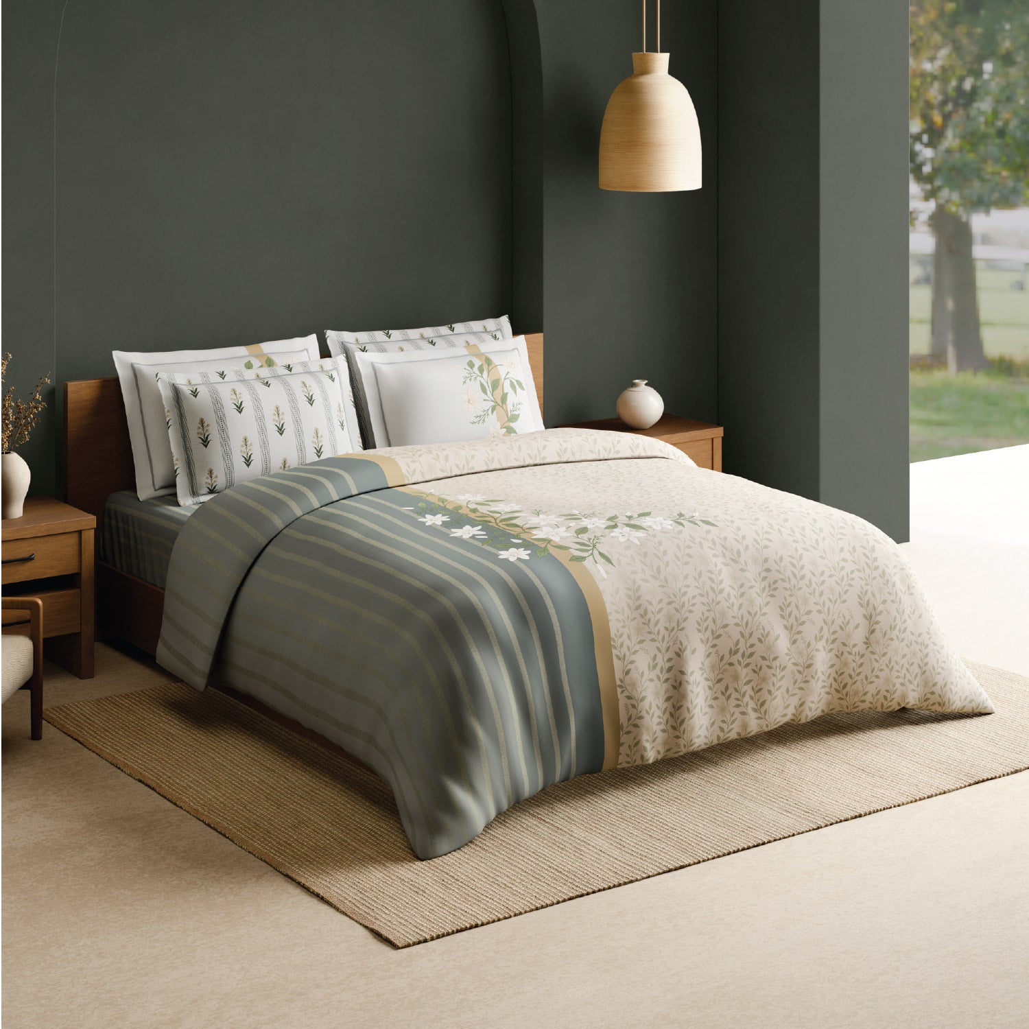 Featuring a graceful floral pattern in a calming Cream shade, this bedding set adds a touch of sophistication and charm to your bedroom décor. Durable, skin-friendly, and easy to care for, the Spaces Meraki Blooms of India Bedsheet Set blends timeless design with dependable comfort.