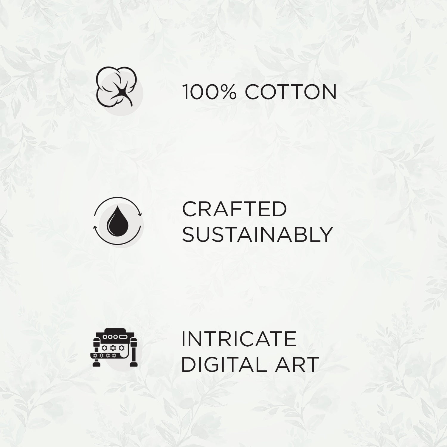 Spaces presents the Neo Paradox Large Bedsheet Set, designed for those who enjoy comfort with a modern artistic touch. Made from 100% cotton with a smooth 152 TC percale weave, this bedsheet feels light, breathable, and super soft, making it ideal for everyday sleeping comfort.The generously sized 274 x 274 cm (108 x 108 inches) bedsheet offers excellent coverage for double and queen-size beds, while the two matching pillow covers (43 x 68 cm / 17 x 27 inches) complete the coordinated look. The breathable cotton fabric allows air circulation, helping you stay comfortable throughout the night.Featuring intricate digital geometric artwork in a calming Coral shade, this bedsheet adds freshness and contemporary style to your bedroom décor. Easy to care for and designed for daily living, the Spaces Neo Paradox Bedsheet Set blends comfort, durability, and modern design in one elegant bedding solution.