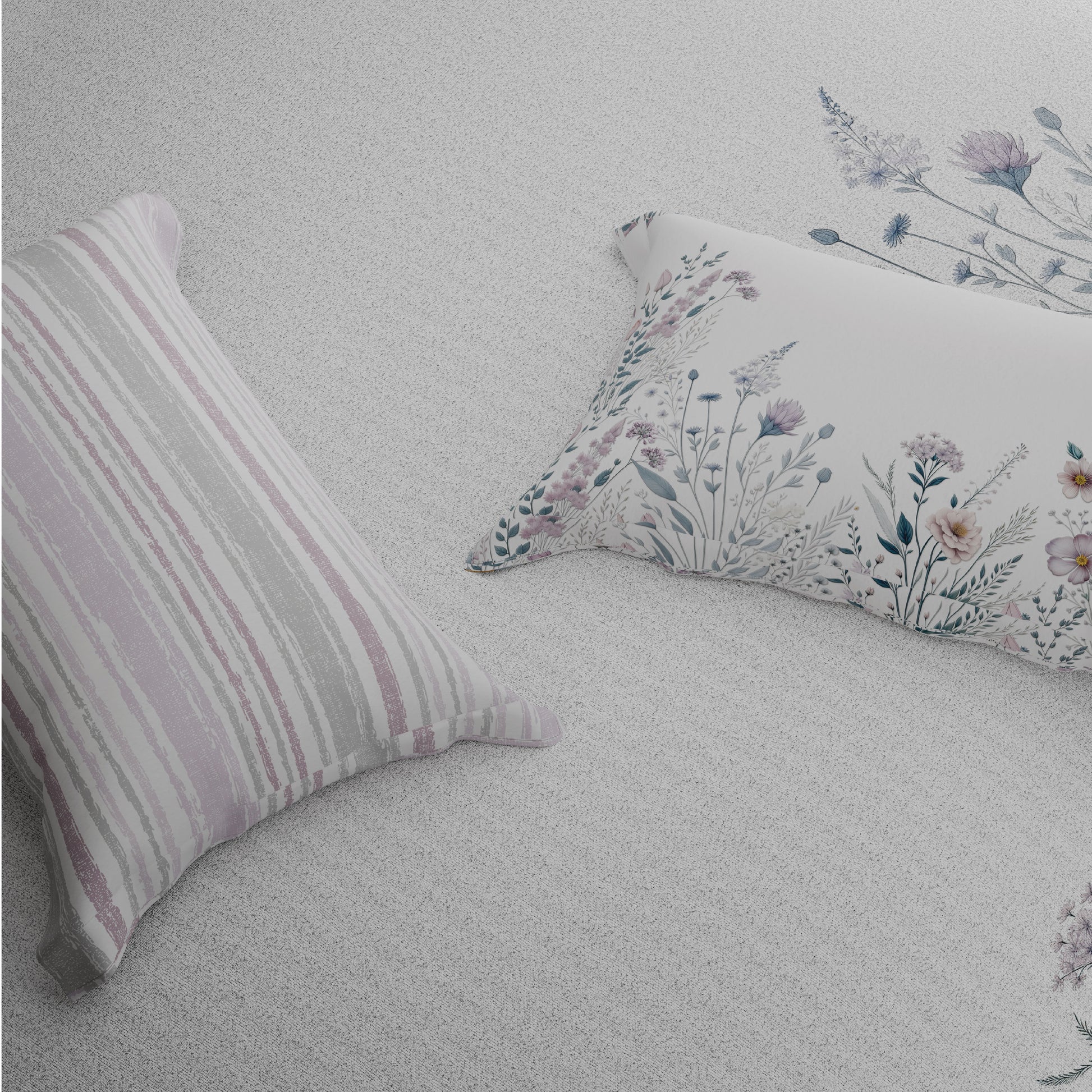 The generously sized 274 x 274 cm (108 x 108 inches) bedsheet provides excellent coverage for king-size beds, complemented by four matching pillow covers (43 x 68 cm / 17 x 27 inches) for a coordinated and polished look. The fabric remains gentle on the skin, making it suitable for daily use.