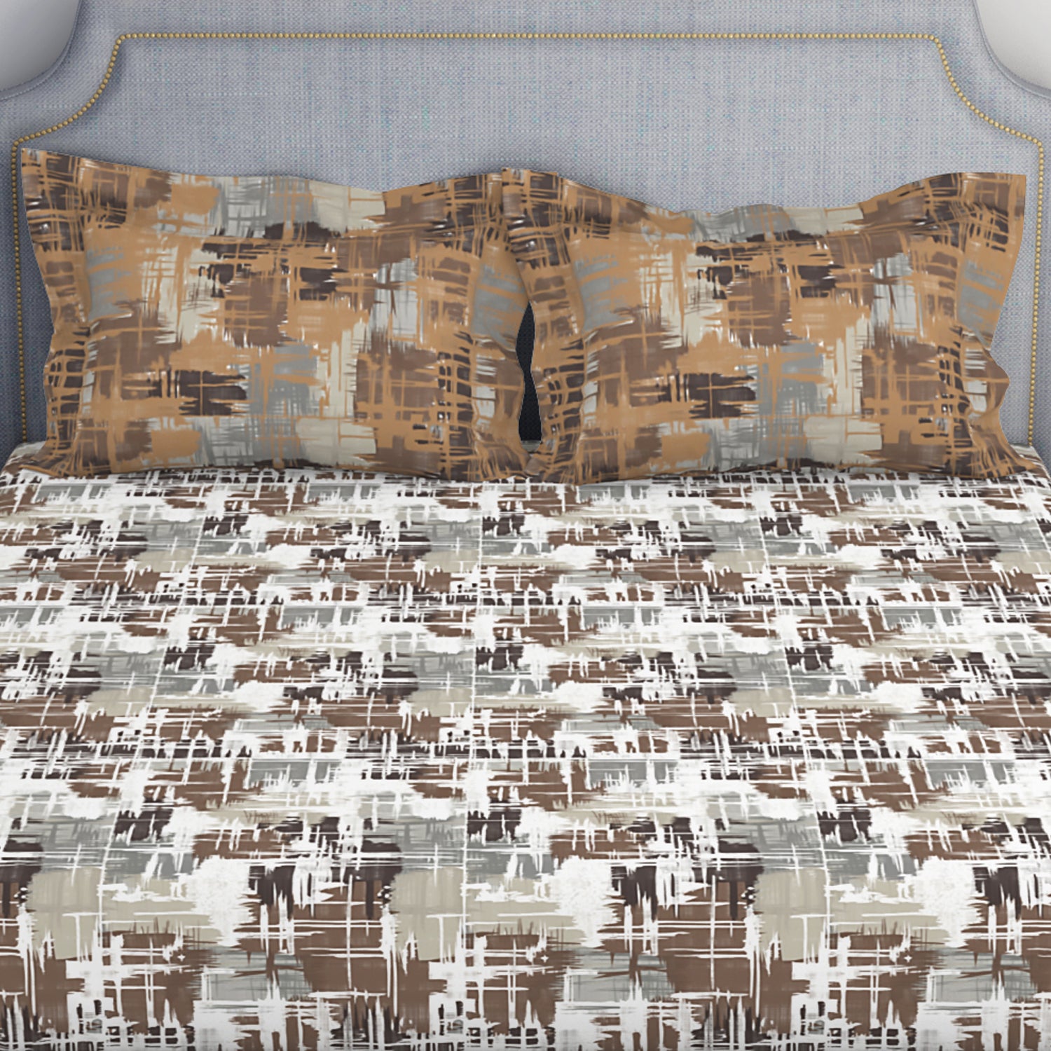 Geometric Dark Brown 100% Cotton Double Bedsheet by Atrium