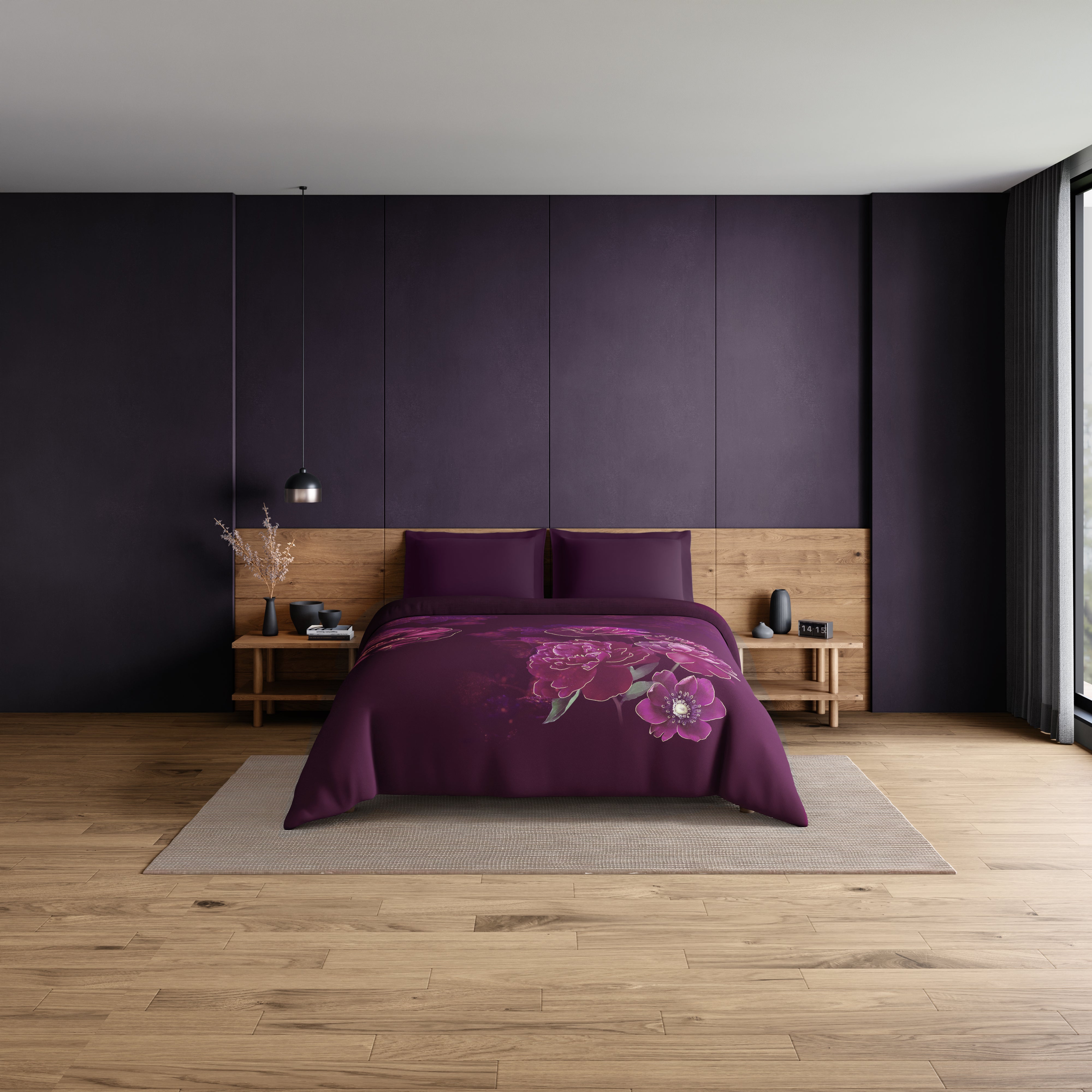 Elegance Noir 100% Cotton Double Quilt, 210TC, Floral, Dark Violet