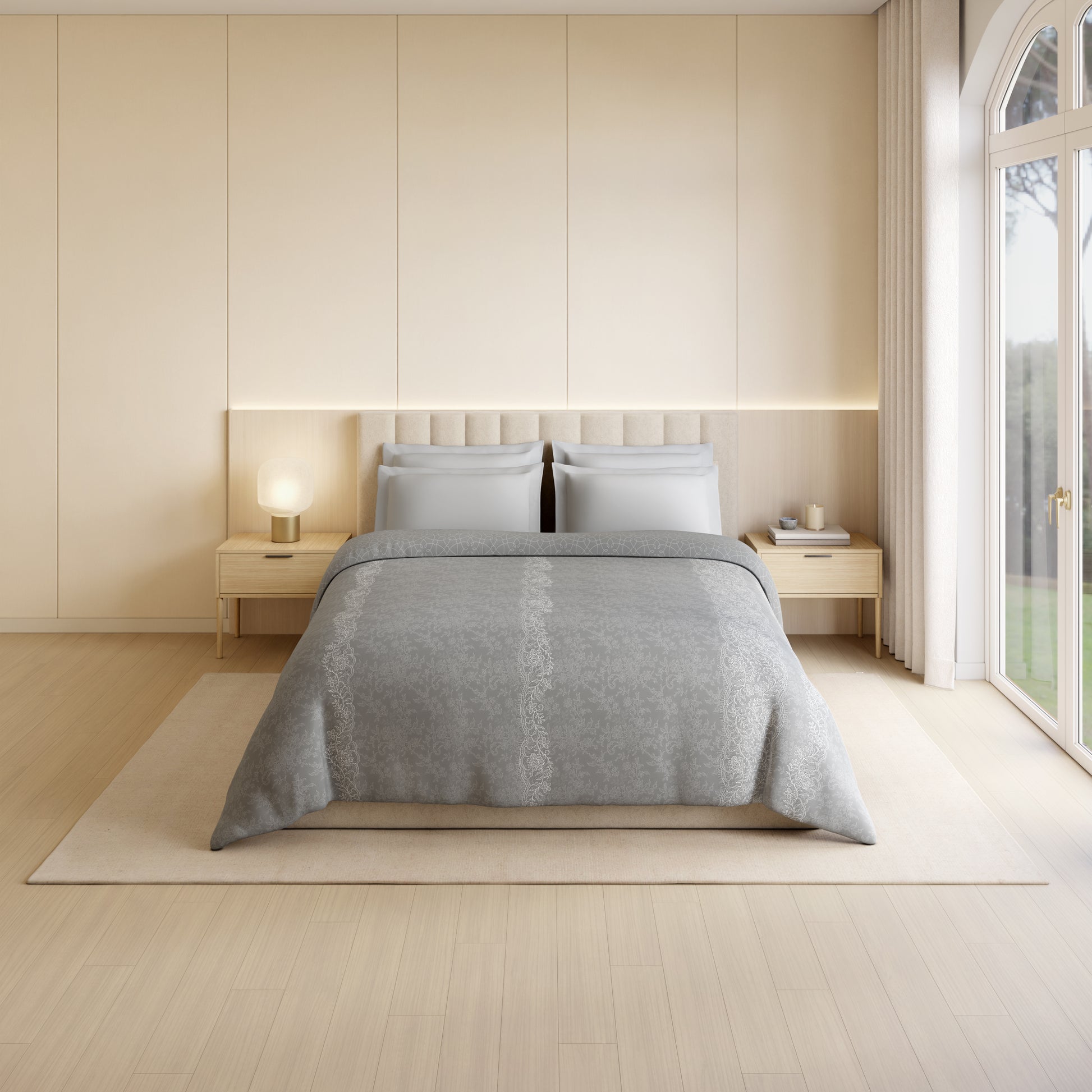 Luxury Loom Impressions 100% Egyptian Cotton Double Quilt, 350 TC, Geometric, Light Grey