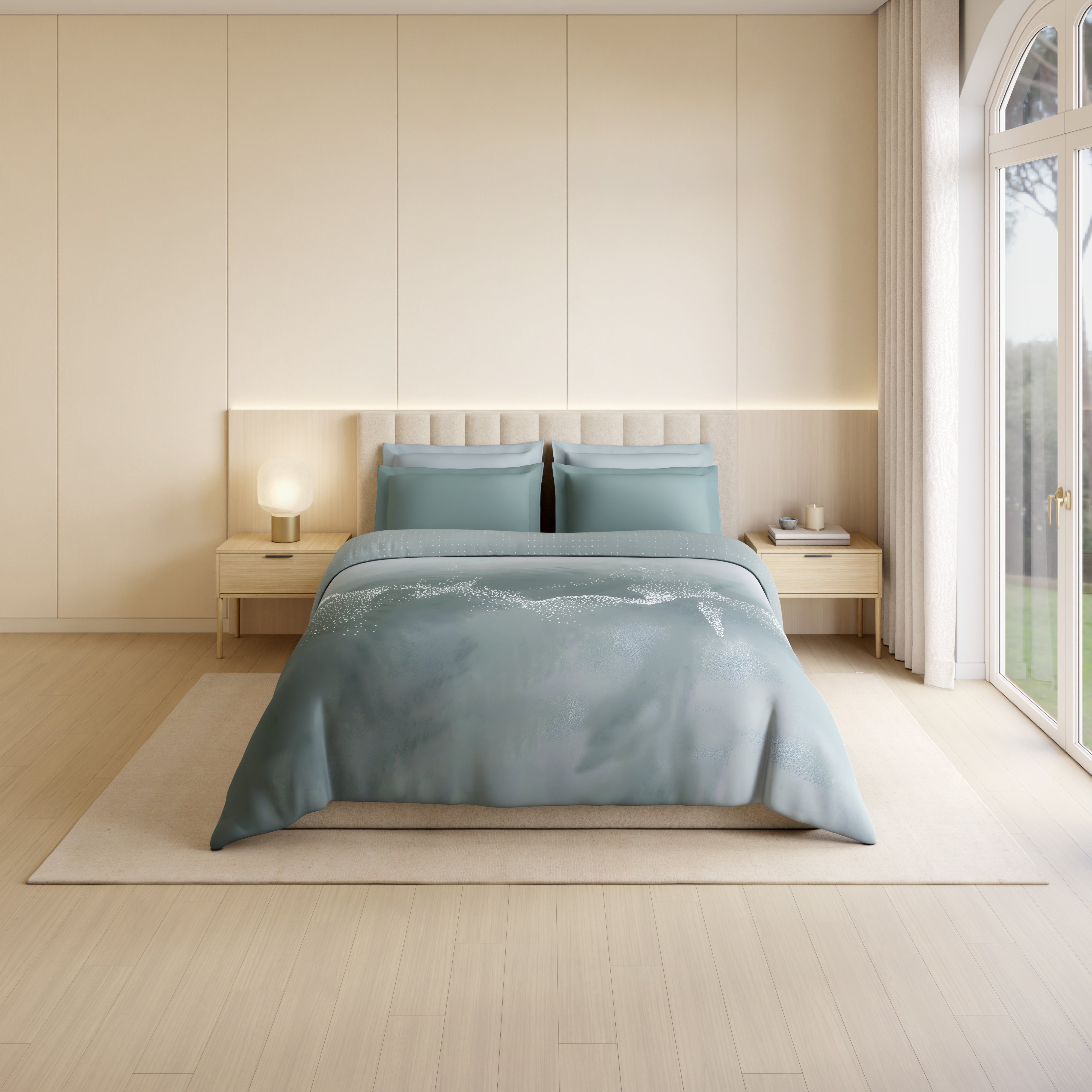 Luxury Alive 100% Cotton Double Quilt, 300 TC, Abstract, Light Teal