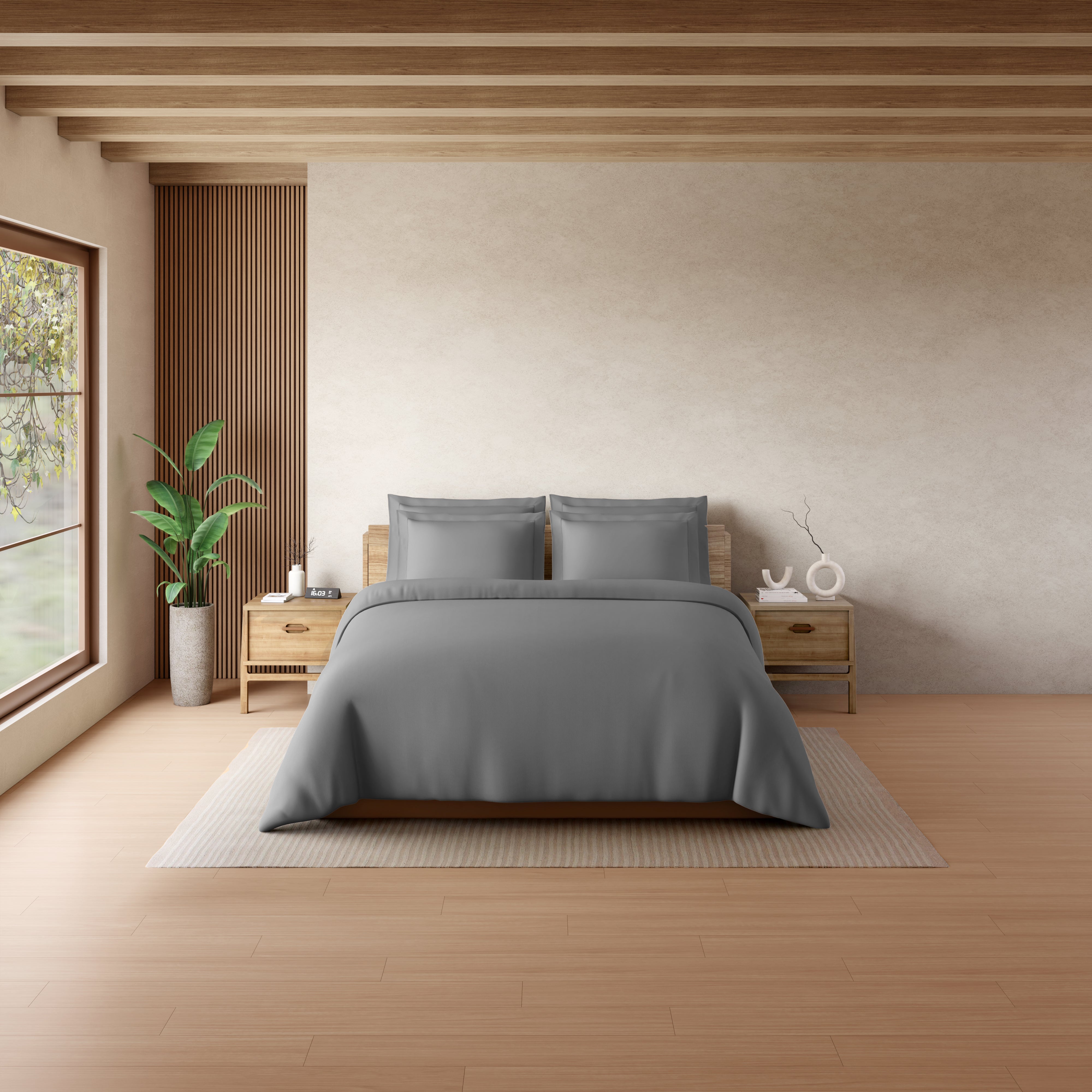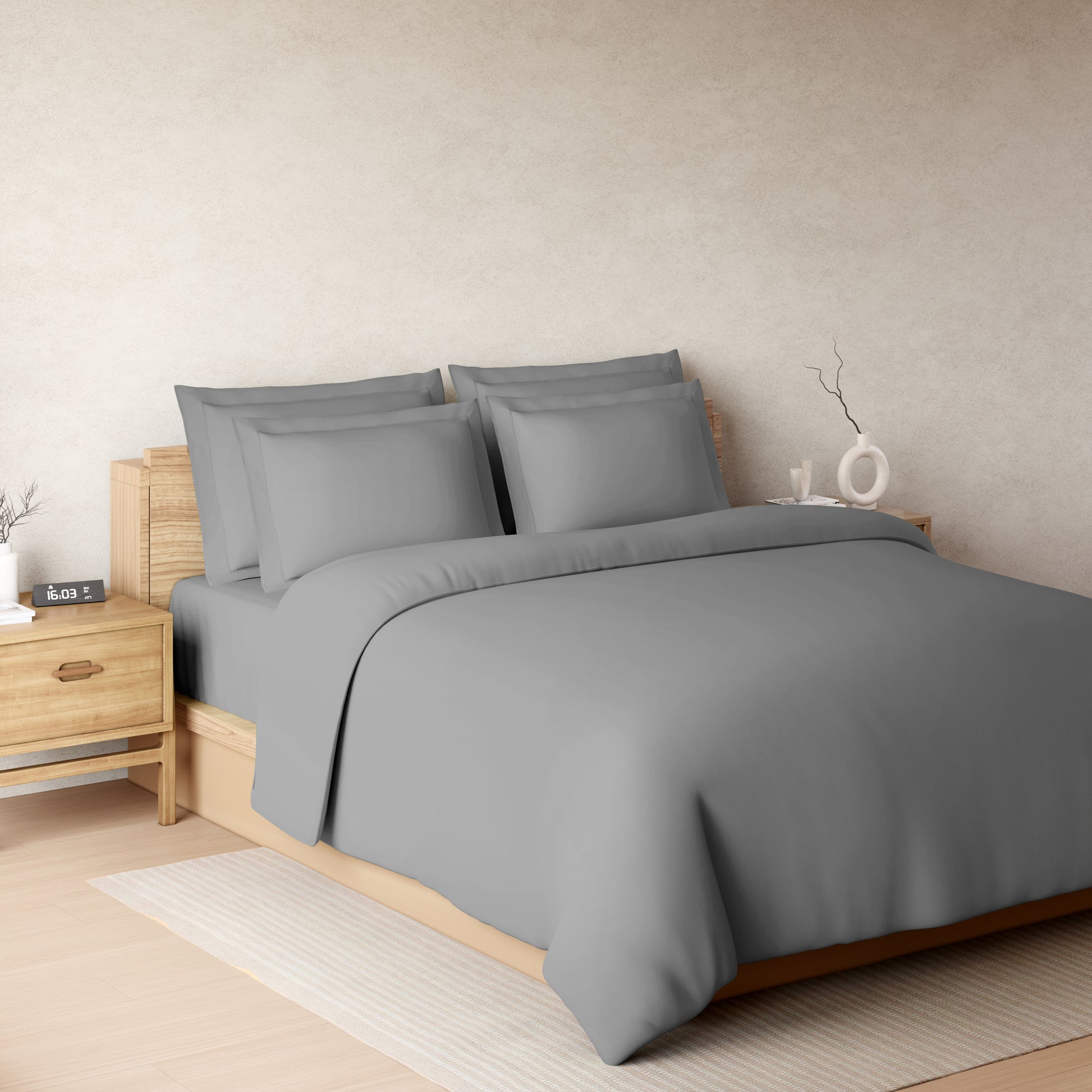 Solid Dark Grey Solid King Size Bedsheet - Eminence By Spaces