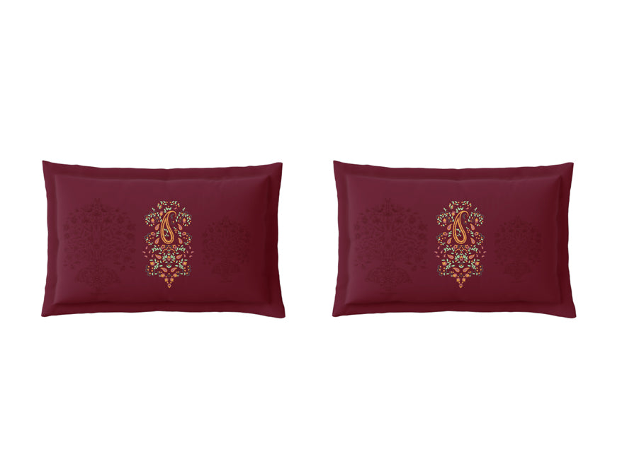 Styled in a rich beige colour with an elegant floral pattern and inspired detailing, this bedsheet adds warmth and a refined festive look to your bedroom décor. The generous large size of 274 × 274 cm (108 × 108 inches) ensures full coverage for king-size and large double beds, while the set of two matching pillow covers (43 × 68 cm / 17 × 27 inches) completes the coordinated look. Ideal for both daily use and special occasions, the Spaces paper mache Bedsheet Set blends comfort, style, durability, and sustainability in one beautifully crafted bedding set.