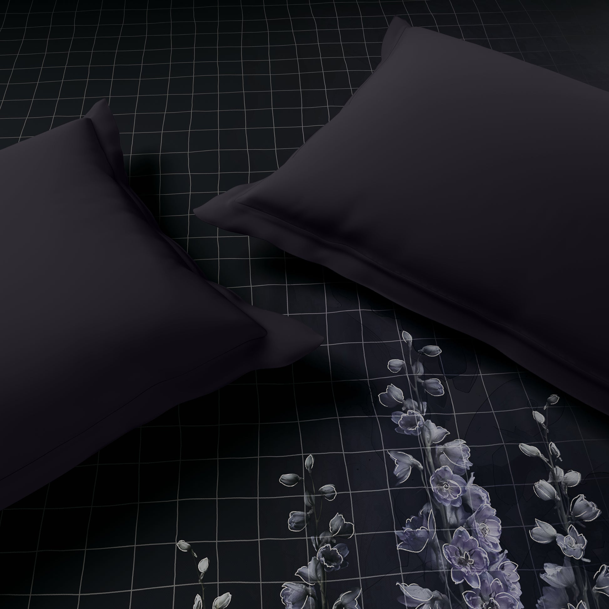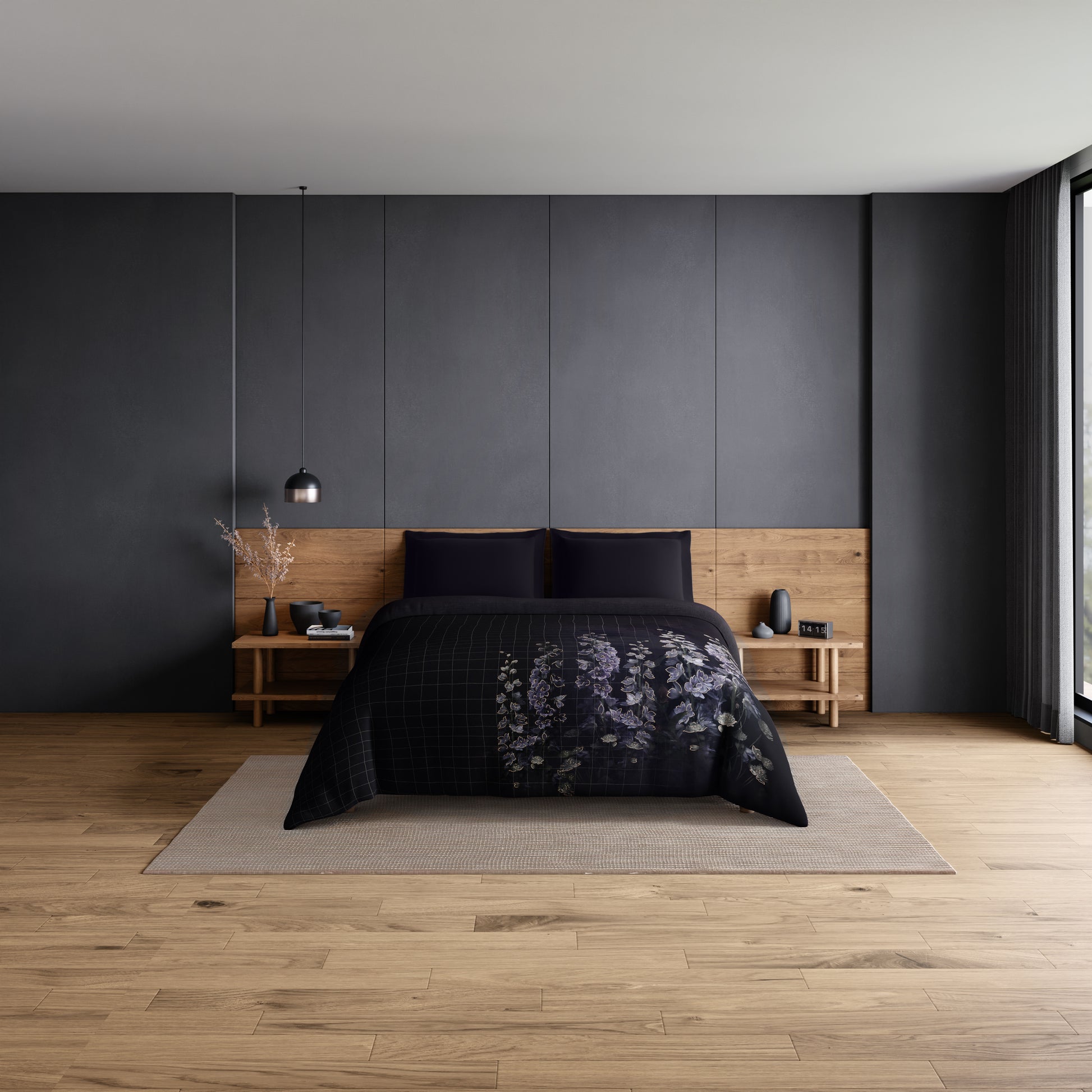 Elegance Noir 100% Cotton Double Quilt, 210TC, Floral, Dark Grey