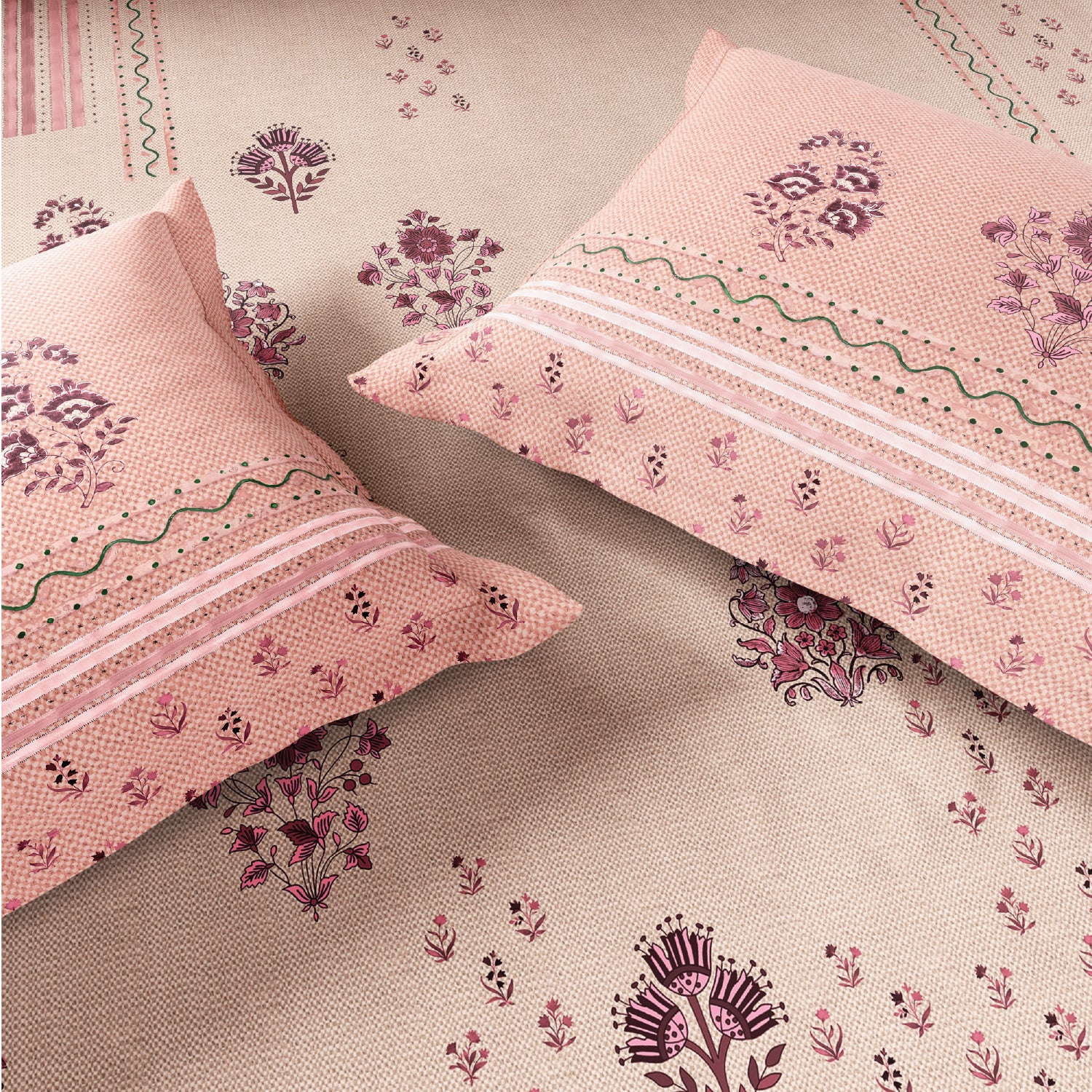 Spaces Neo Chaap 100% Cotton 152 TC Percale Floral Permium Double Blanket Quilt, Light Blush