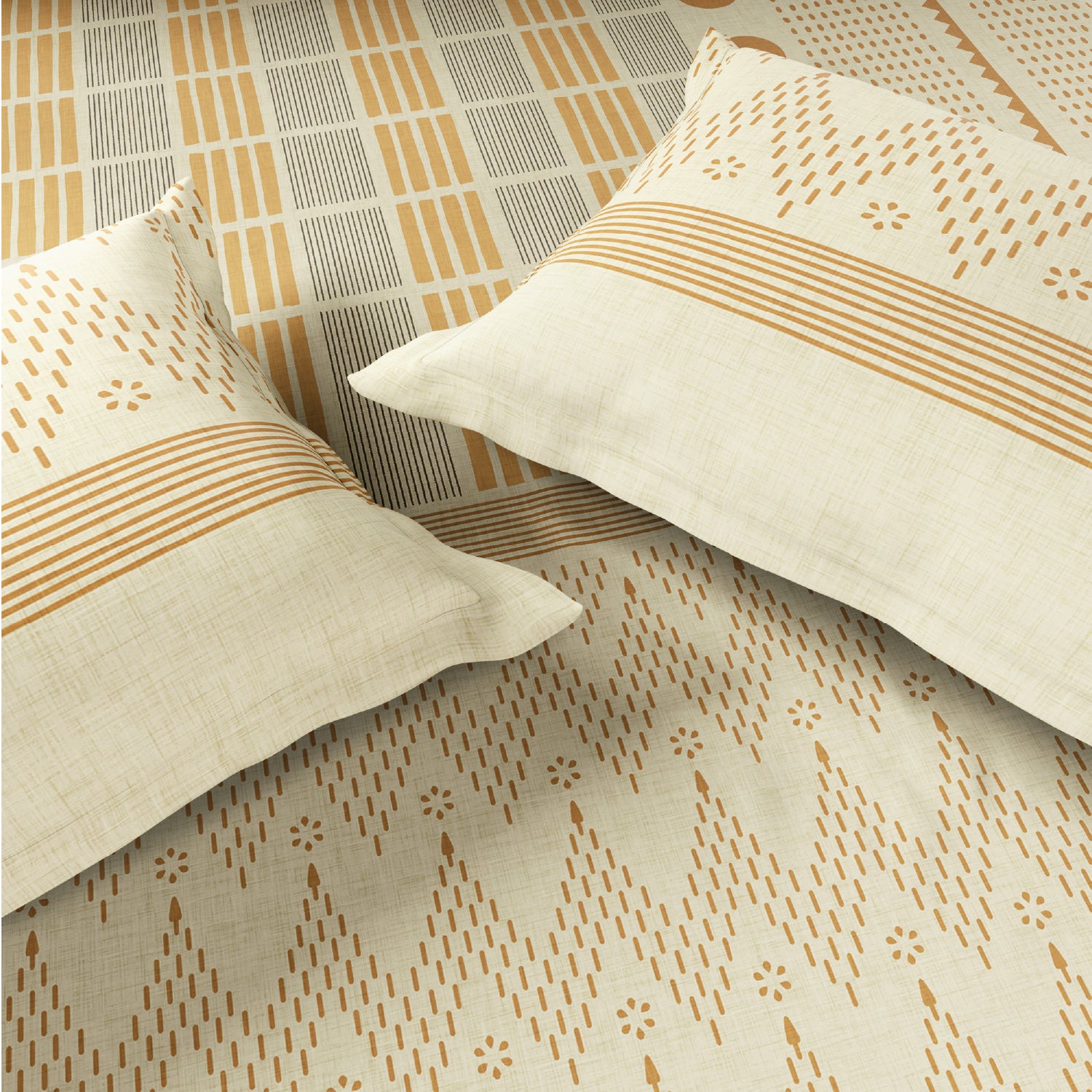 Spaces Neo Chaap 100% Cotton 152 TC Percale Geometric Permium Double Blanket Quilt, Yellow