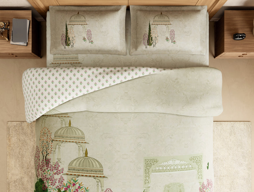 Rangana Digital 100% Cotton Large Bedsheet, 300 TC, Ornate, Light Yellow