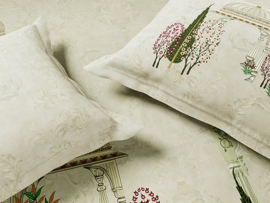 Dimensions: 274CMX274CM/43CMX68CM, Pattern: Ornate, Package Contain: 1 Large Bedsheet with 2 Pillow Covers
