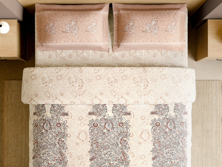 Rangana Muted 100% Cotton Large Bedsheet, 210 TC, Ornate, Blush