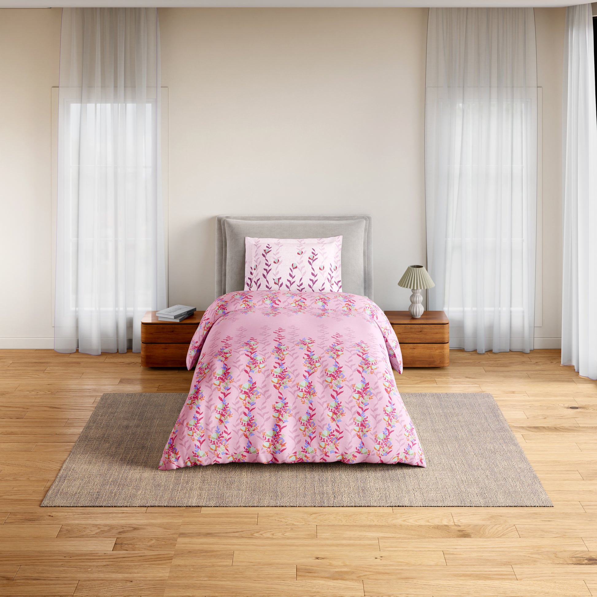 Essentials 100% Cotton Single Bedsheet, 144 TC, Floral, Light Violet