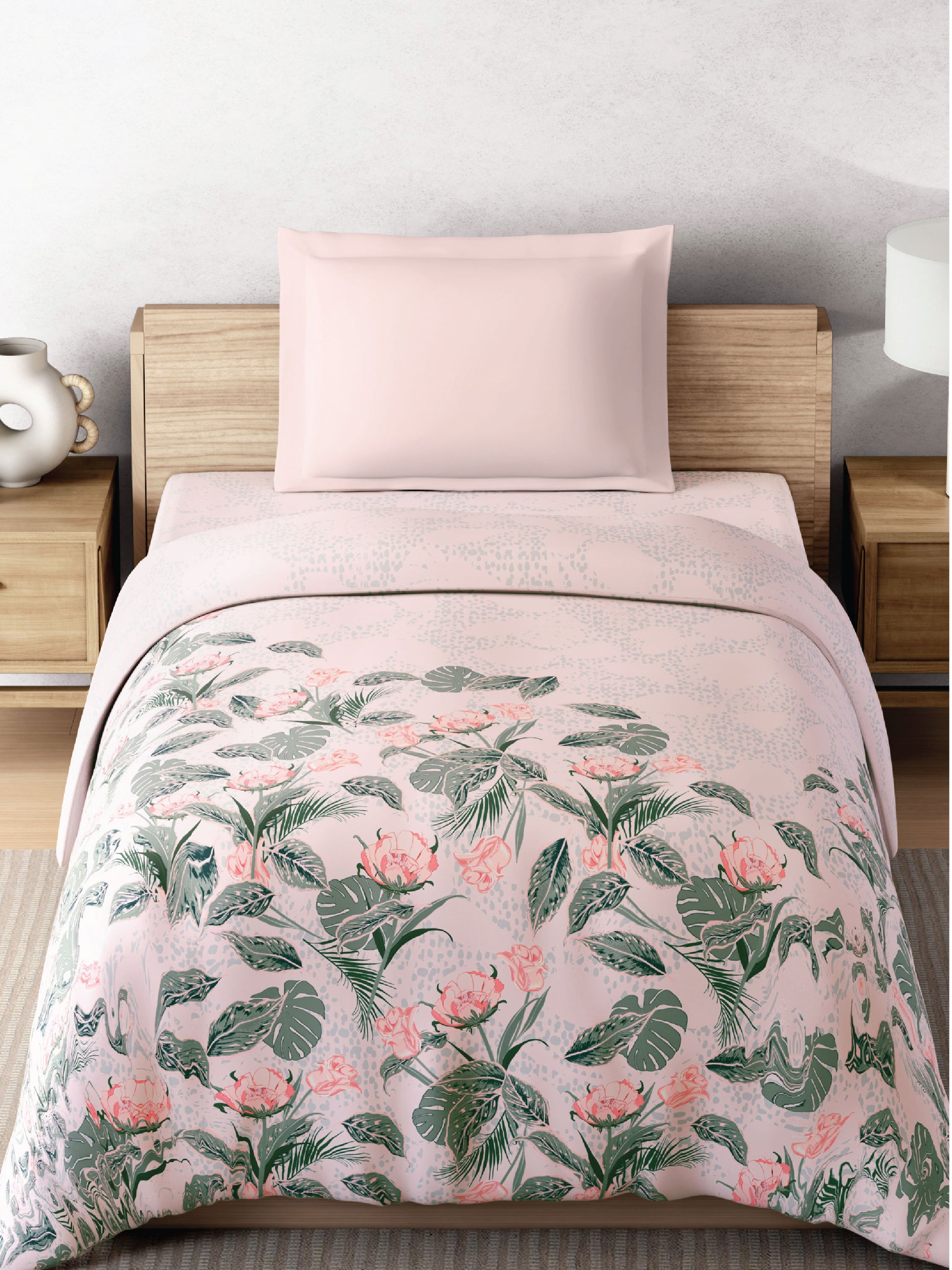 Zera Hygro Cotton 233 TC Percale Floral Single Quilt, Blush