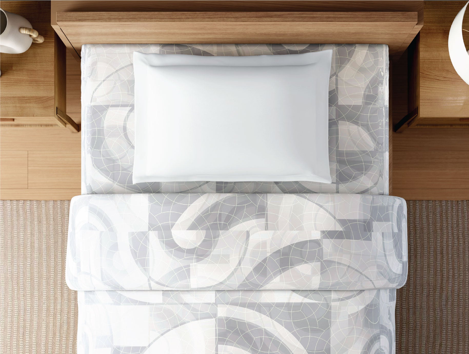 Zera Hygro Cotton 233 TC Percale Geometric Single Quilt, Light Grey