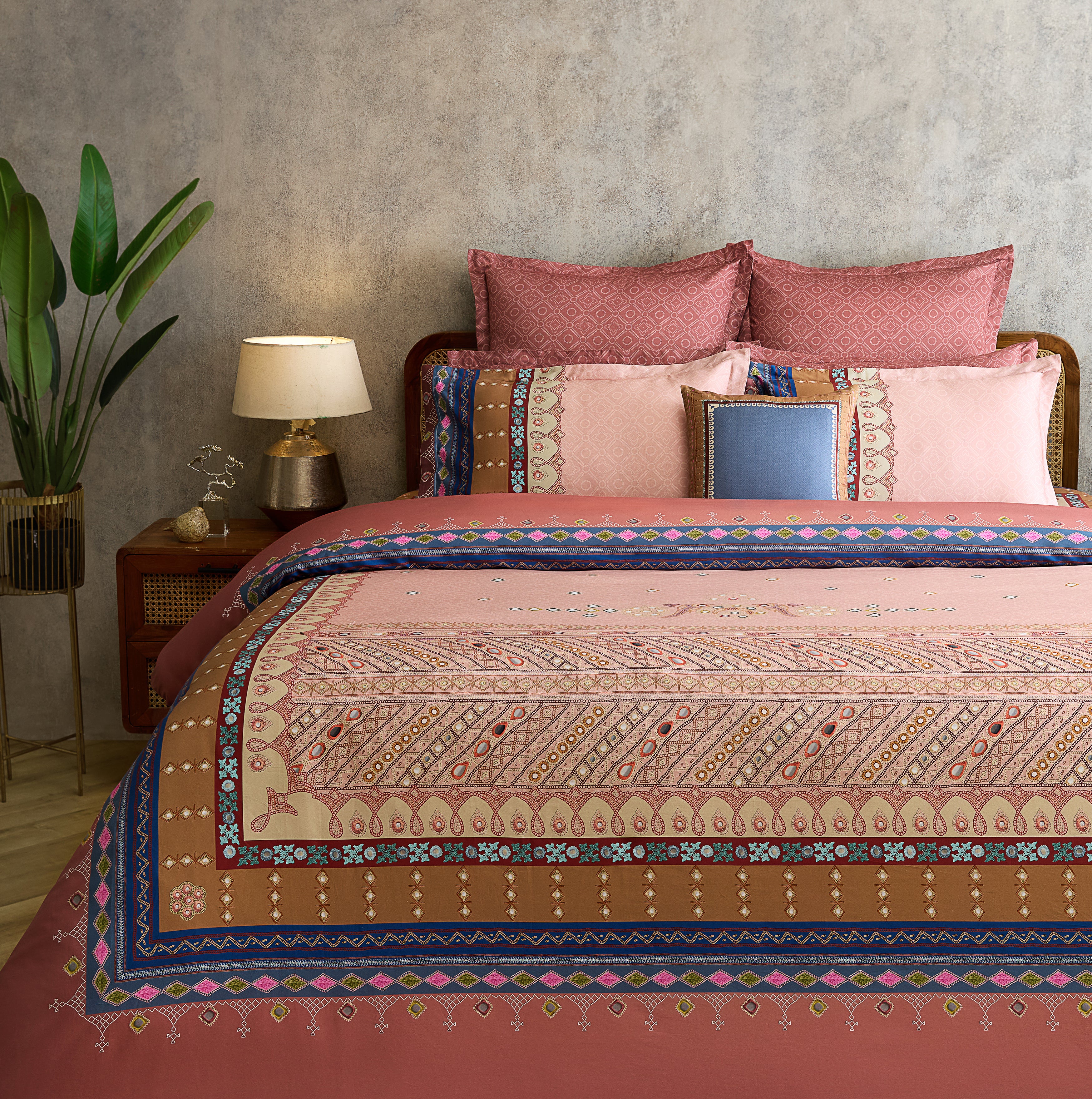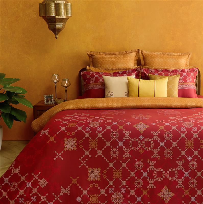Shubha 100% Cotton Large Bedsheet, 300 TC, Ornate, Rhythmic Red