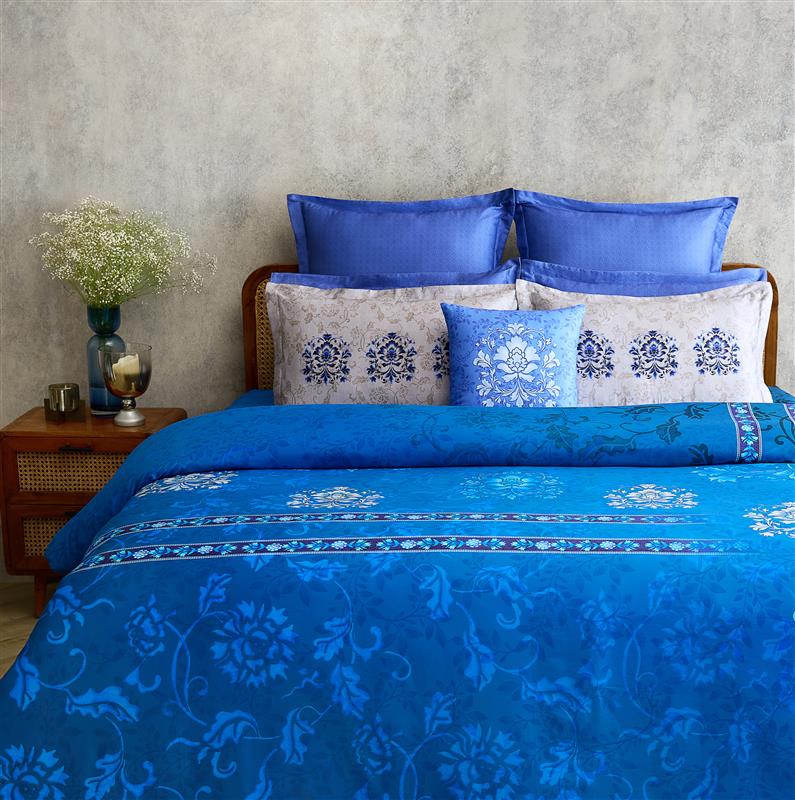 Shubha 100% Cotton Large Bedsheet, 300 TC, Floral, Lichen Blue