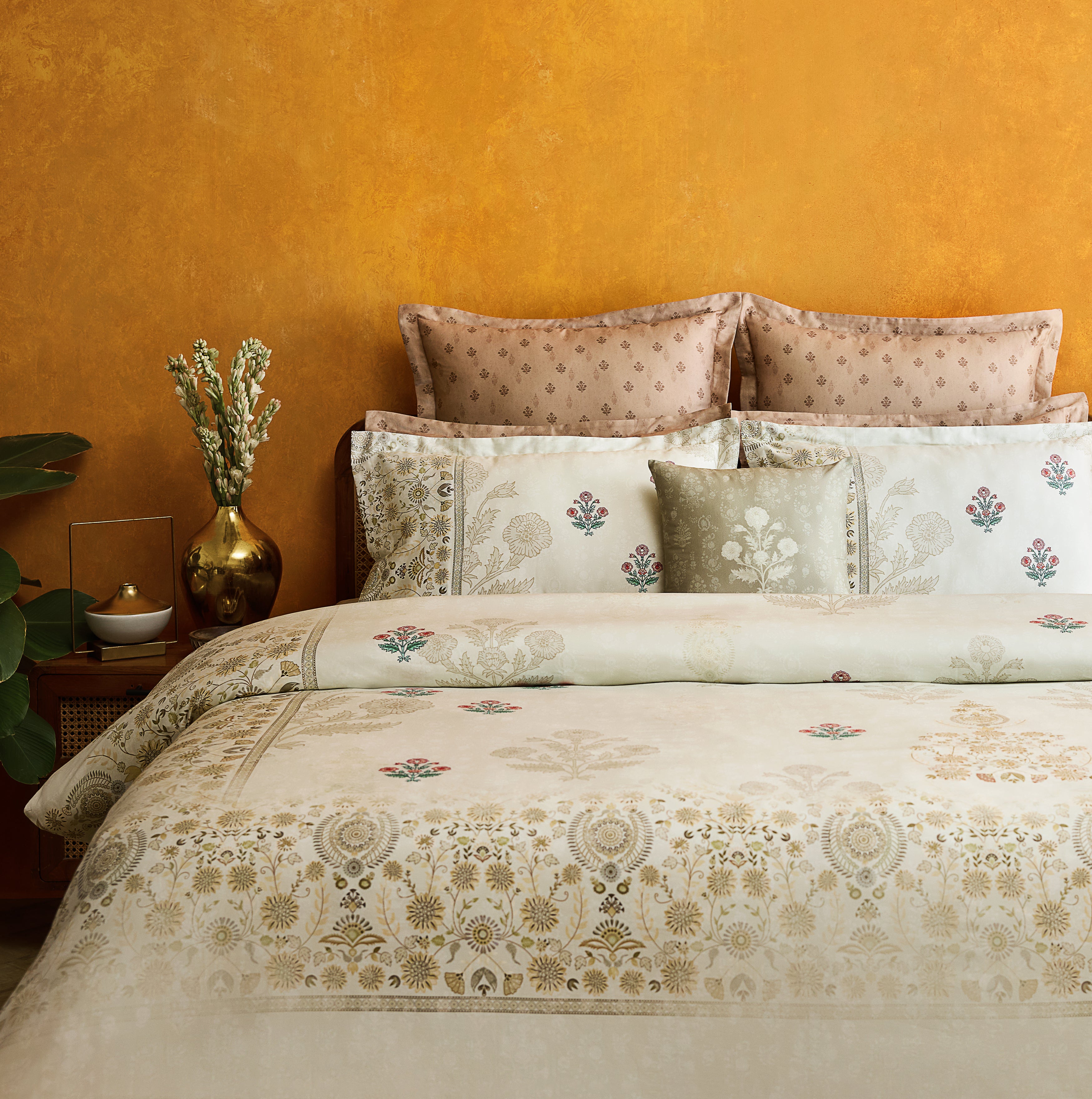 Shubha 100% Cotton Large Bedsheet, 300 TC, Floral, Tibetan Stone
