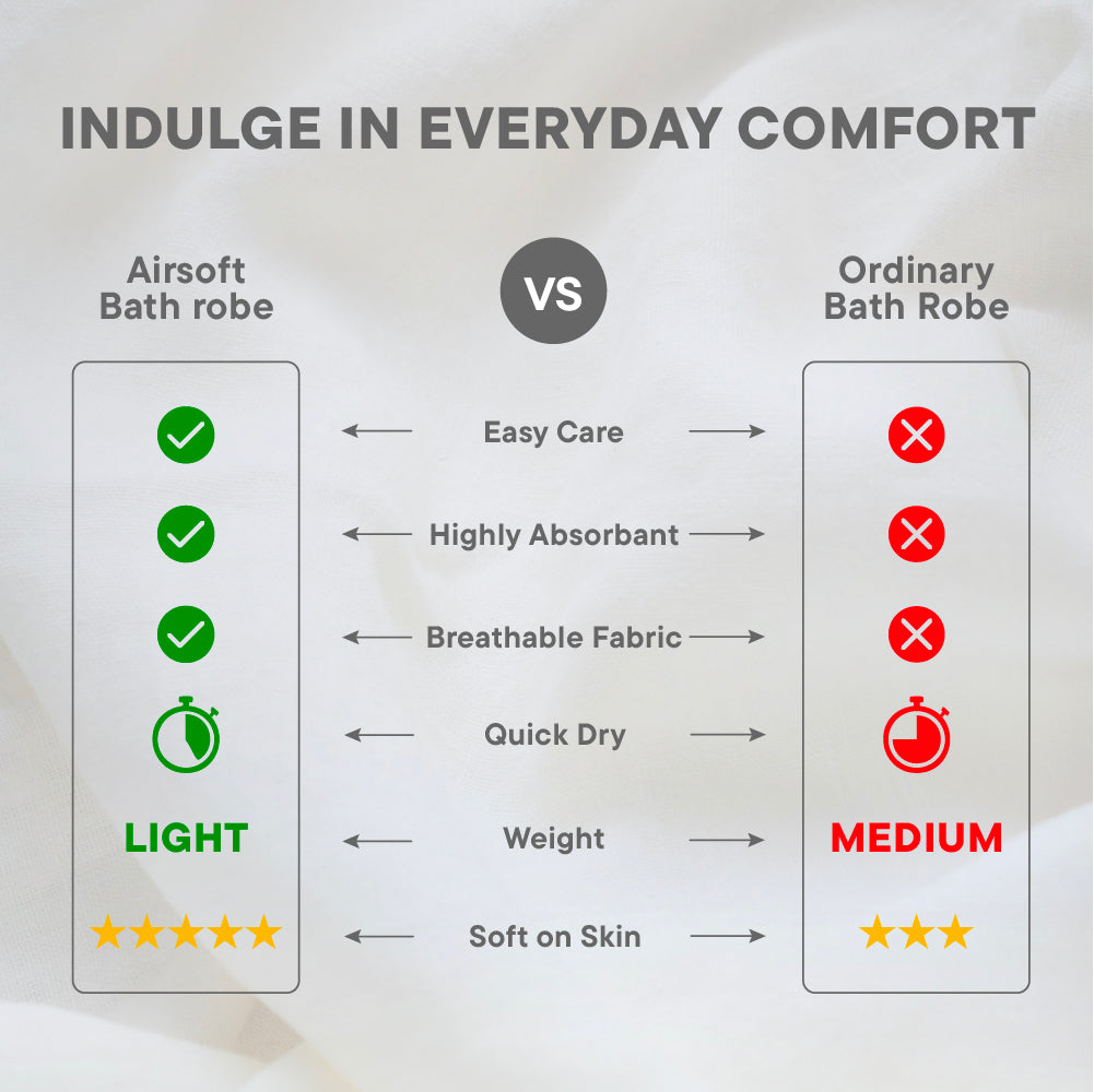 Airsoft 100% Cotton Bath Robe, 300 GSM, Solid, Grey