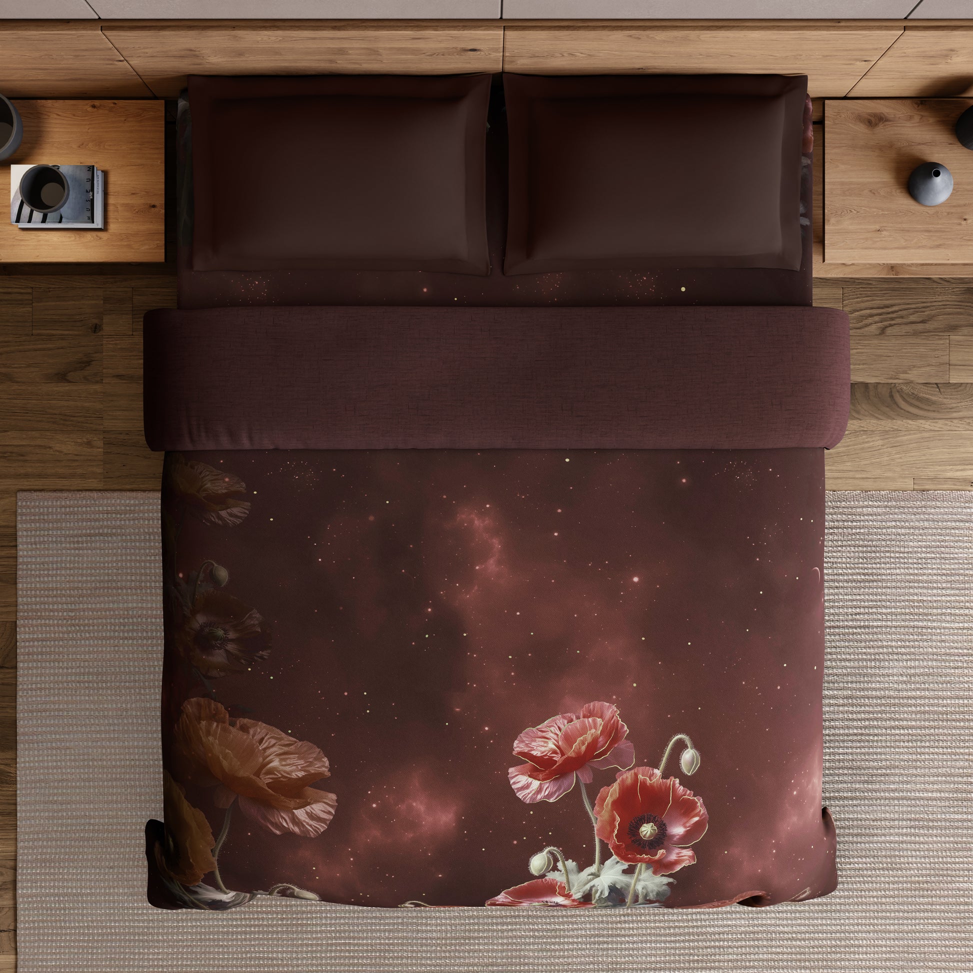 Elegance Noir 100% Cotton Double Quilt, 210TC, Floral, Dark Brown