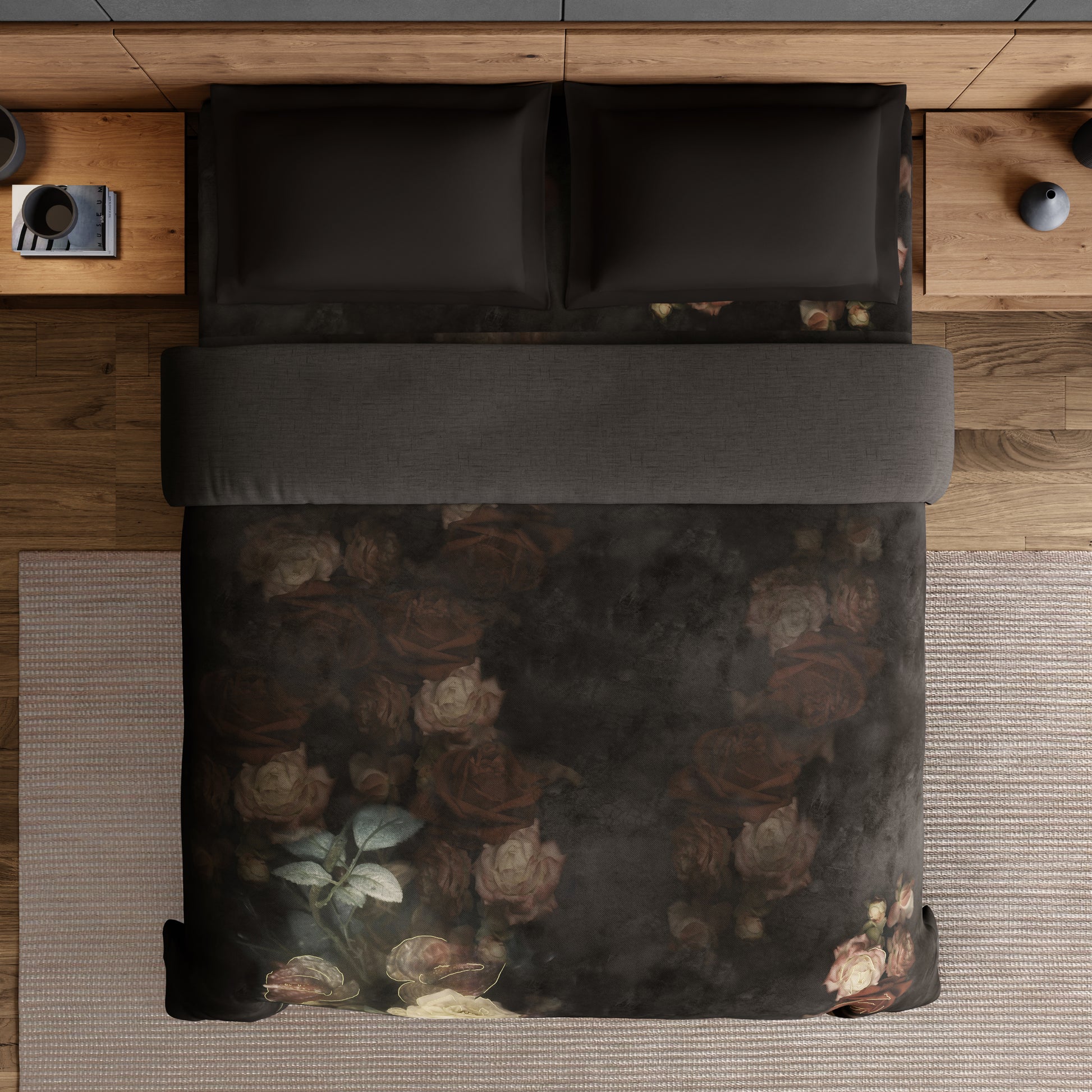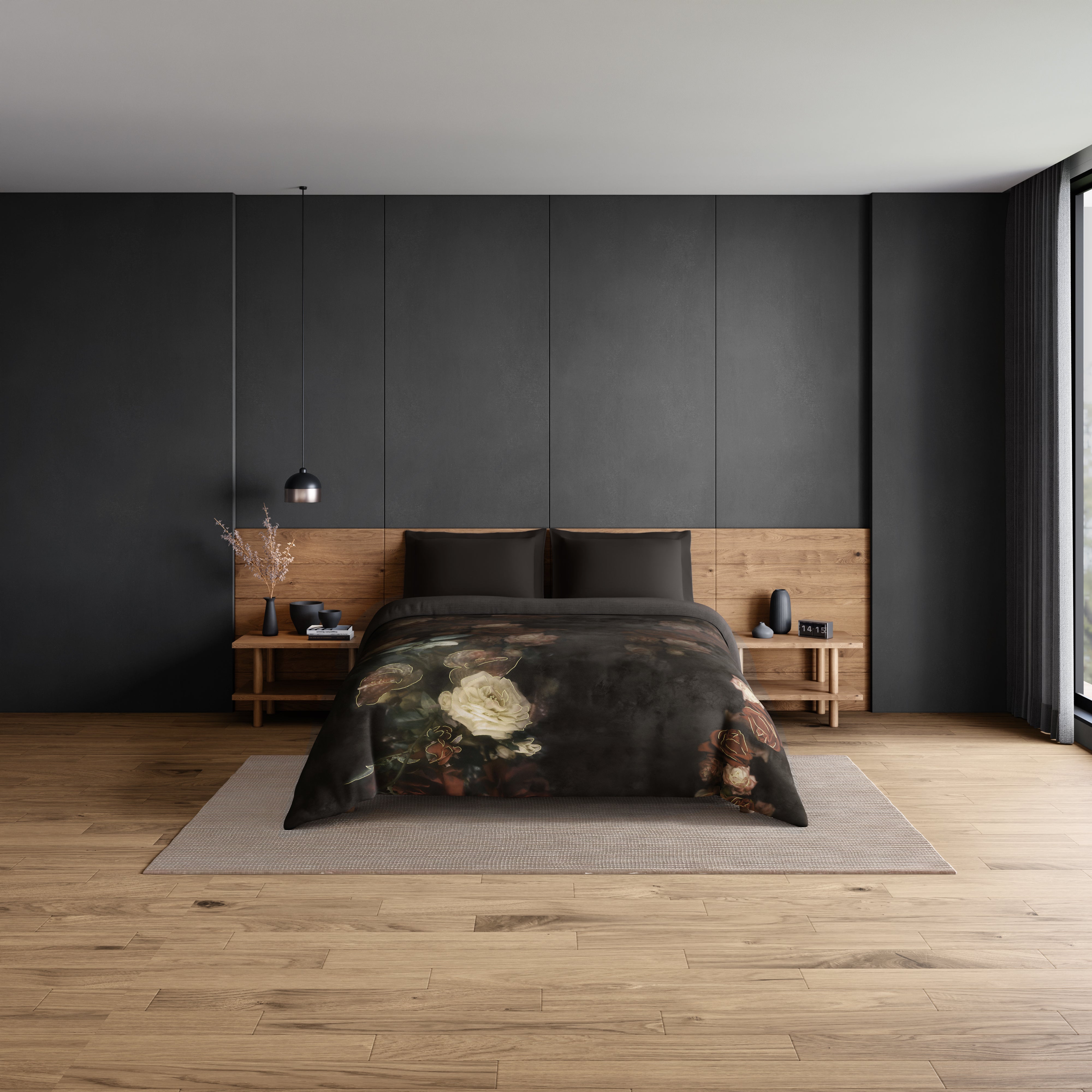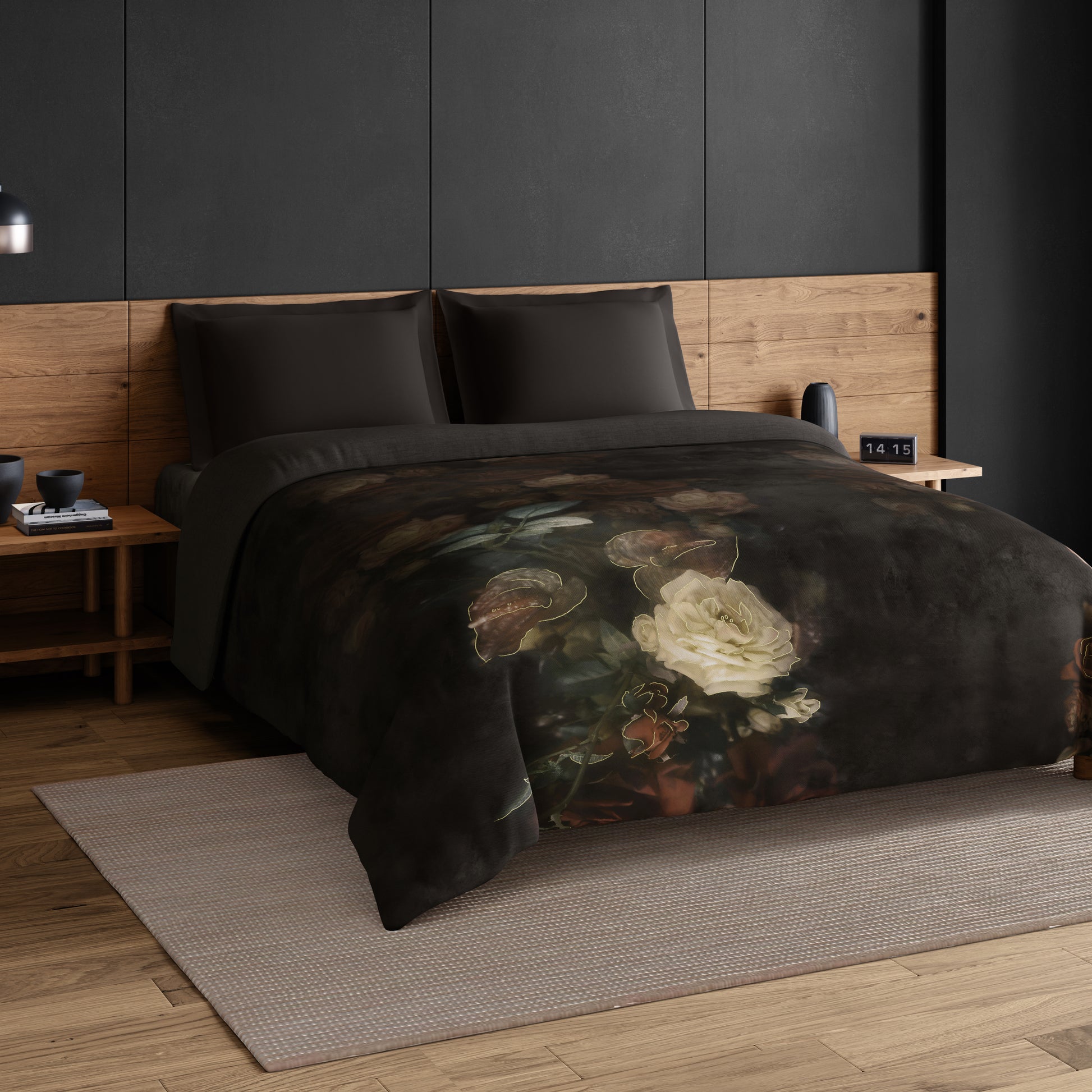 Elegance Noir 100% Cotton Double Quilt, 210TC, Floral, Dark Brown