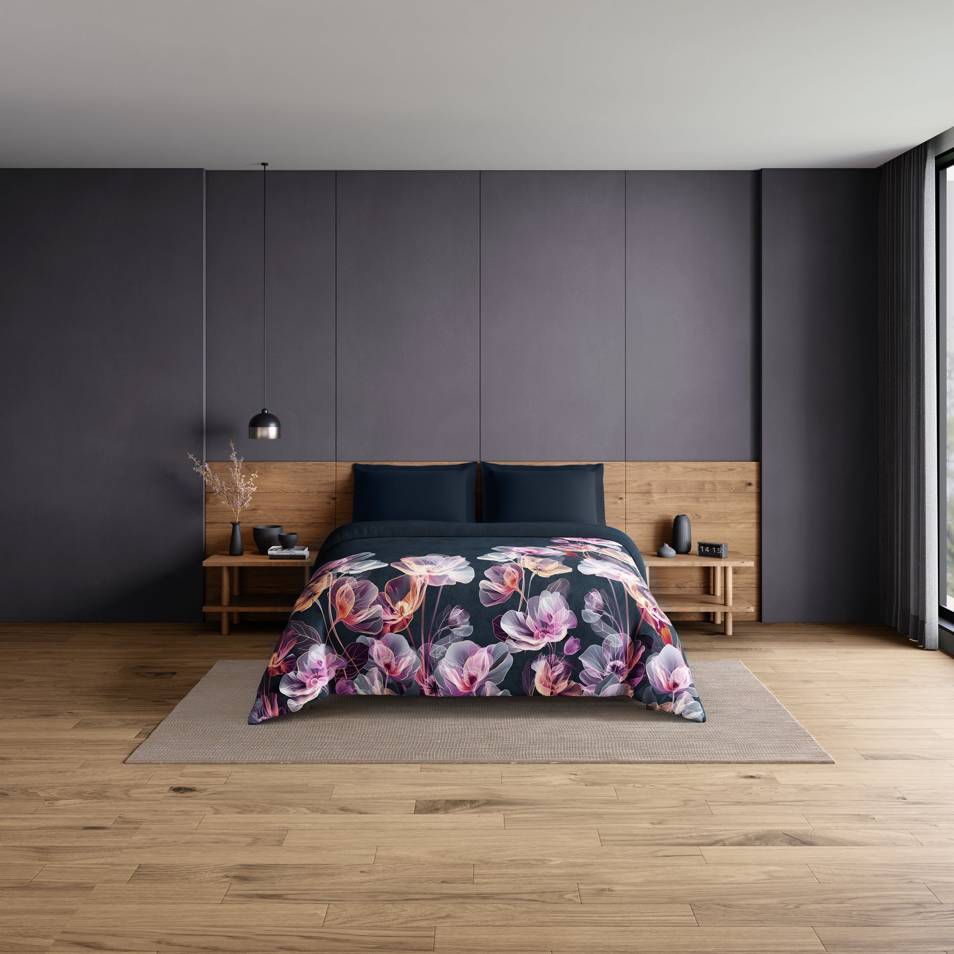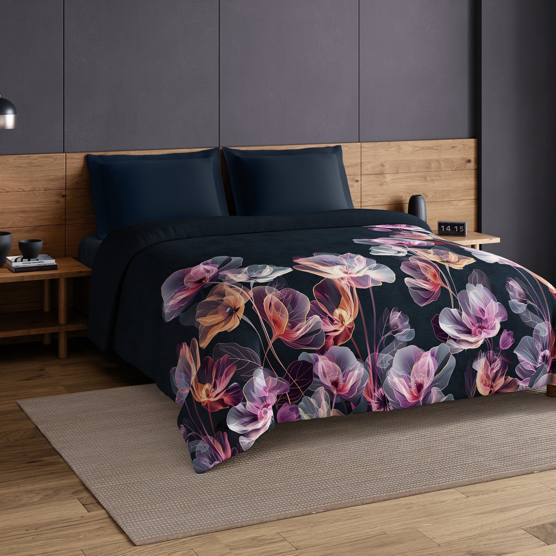 Elegance Noir 100% Cotton Double Quilt, 210TC, Floral, Dark Teal