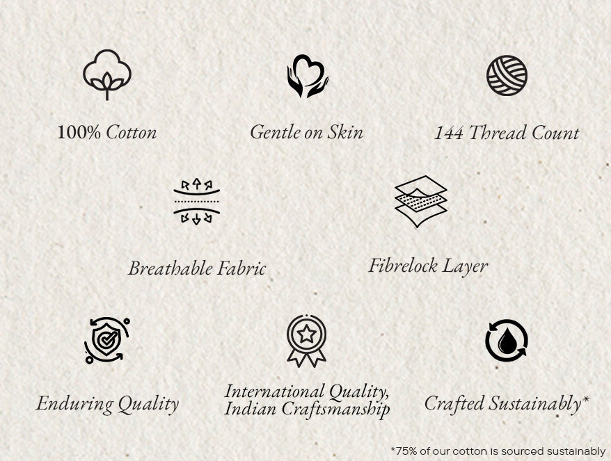 Spaces introduces the Itsy Bitsy Single Quilt, thoughtfully designed to bring warmth, comfort, and timeless style to your bedroom. Filled with premium 100% Cotton and crafted using a smooth 144 TC construction, this quilt offers a soft, lightweight feel that keeps you cozy during winter while remaining easy to handle and maintain. The Skin Safe fabric ensures a gentle, irritation-free experience, making it ideal for everyday use for all age groups.