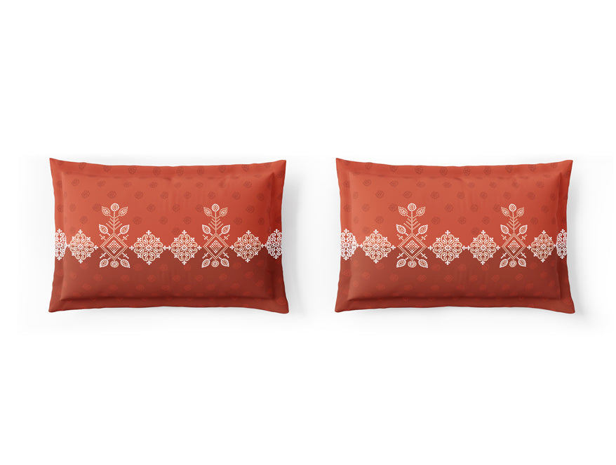 Essentials 100% Cotton Large Bedsheet, 144 TC, Ornate, Rust