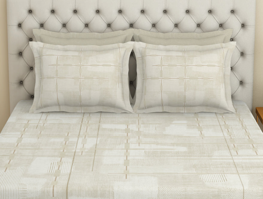 Essentials Premium 100 % Cotton Large Bedsheet, 180 TC, Geometric, Taupe