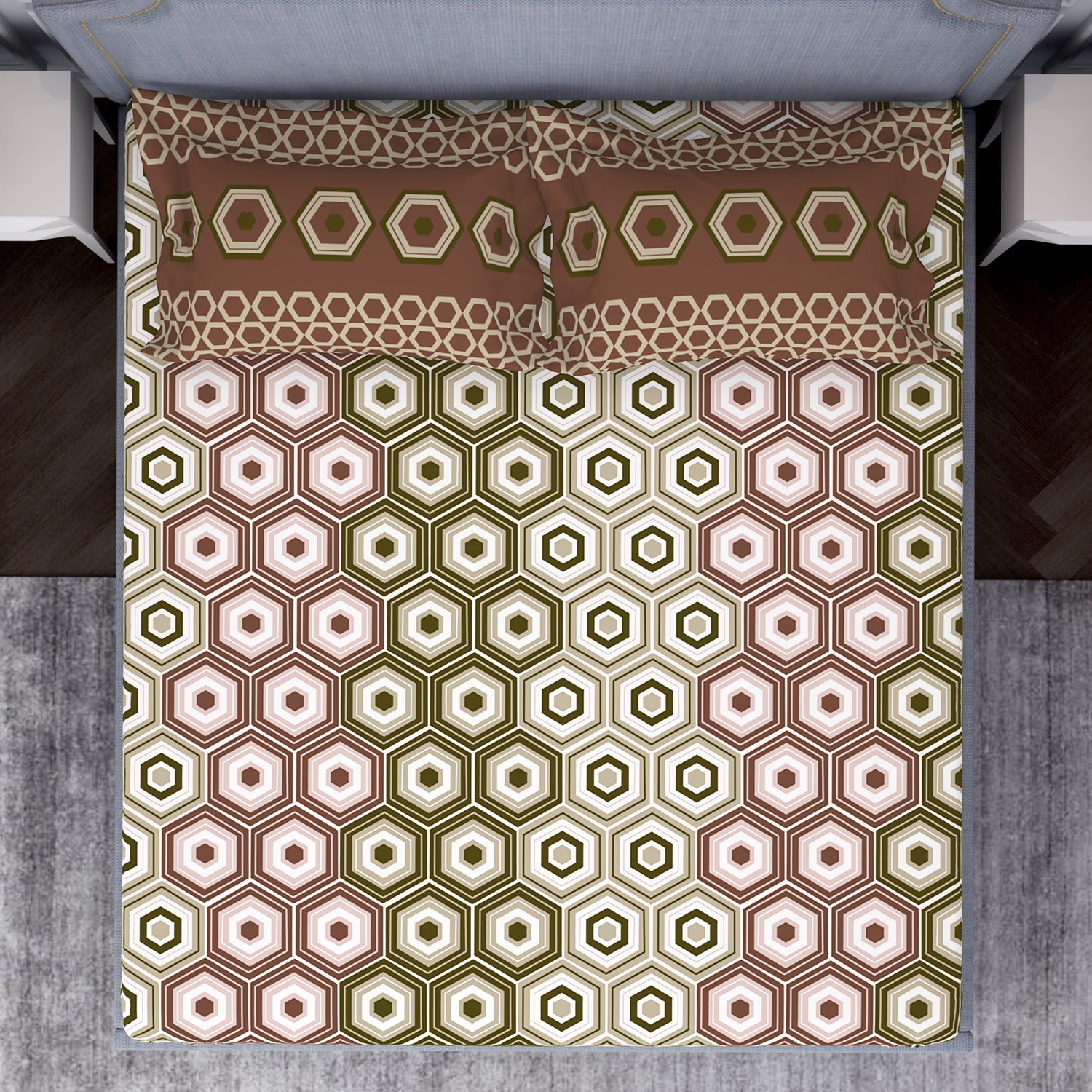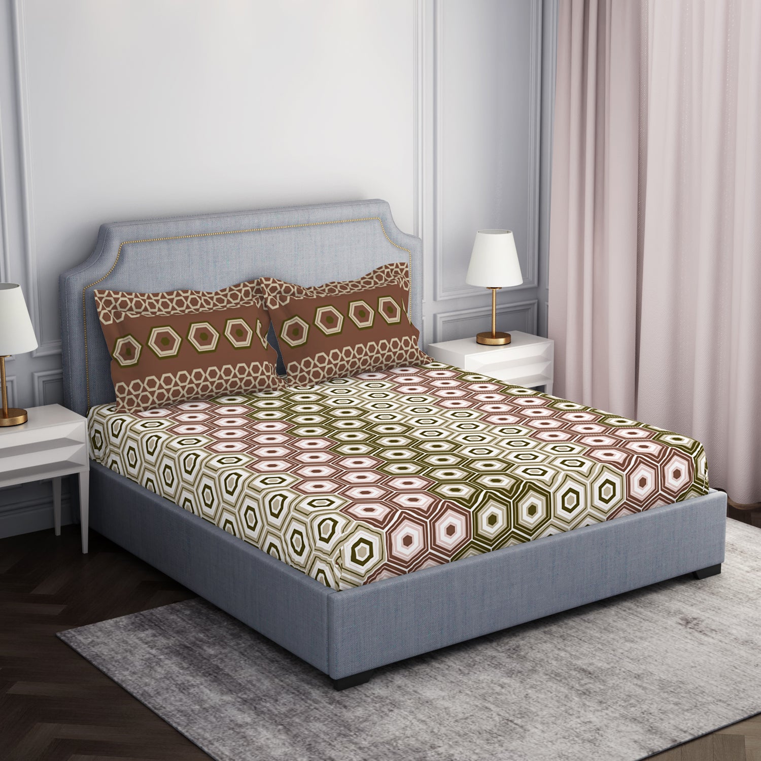 Geometric Brown 100% Cotton Double Bedsheet by Atrium