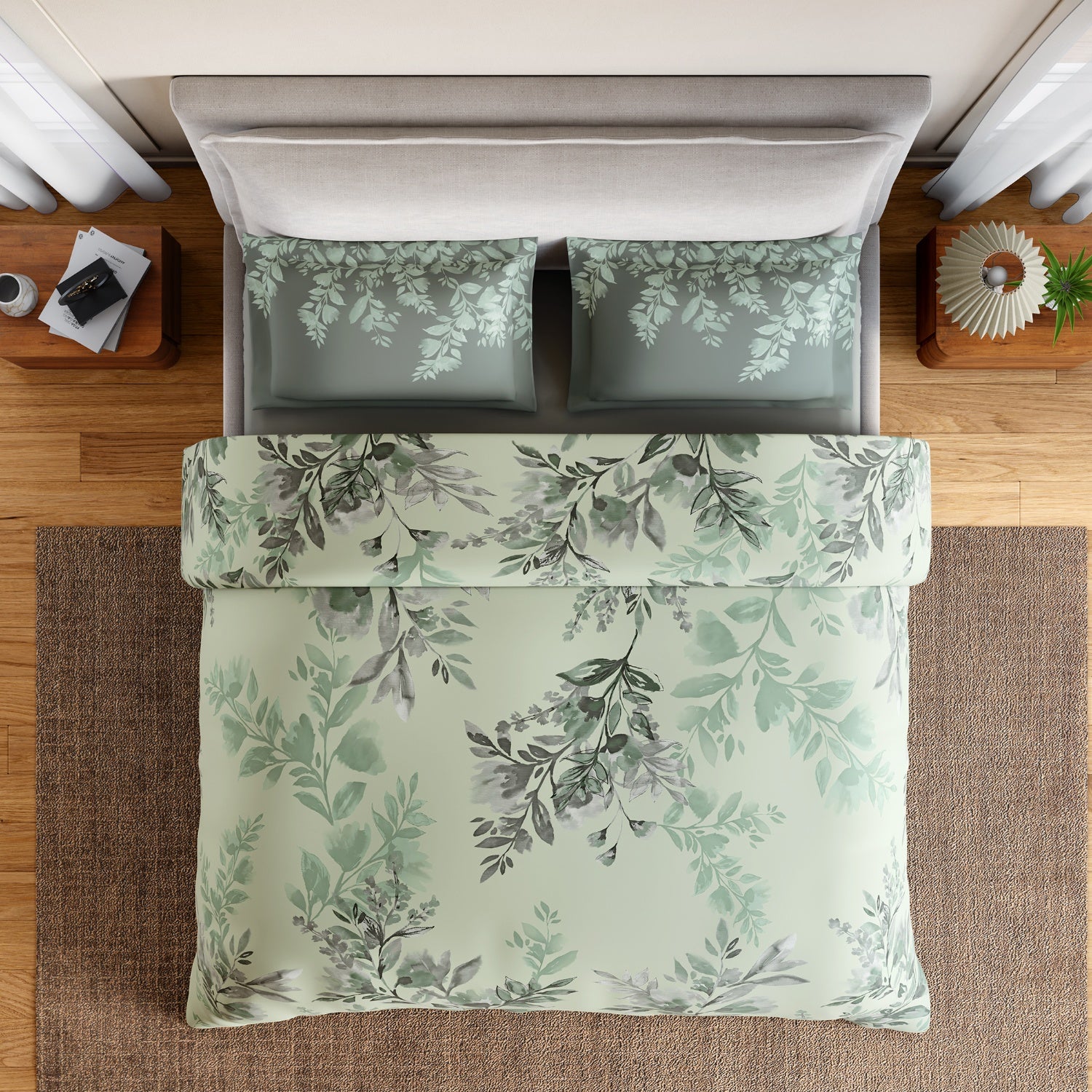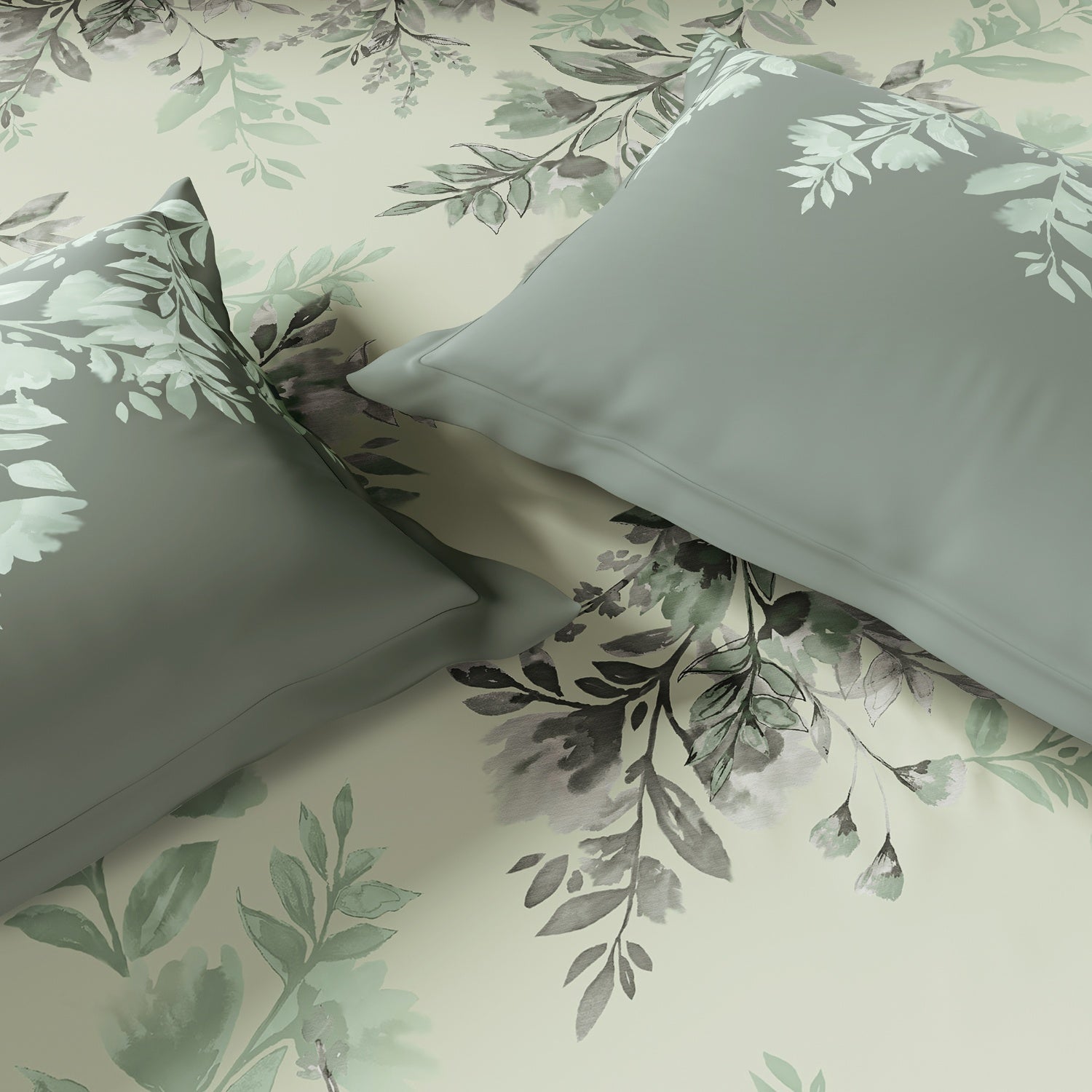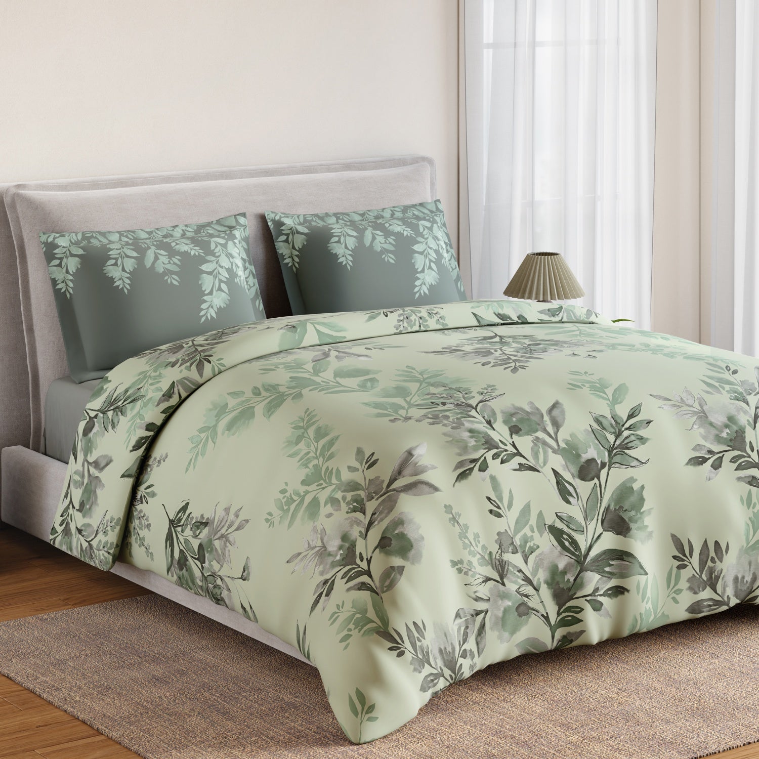 Spaces Rio Bloomscape 100% Cotton 132 TC Percale Floral Double Bedsheet with 2 Pillow Covers, Light Green