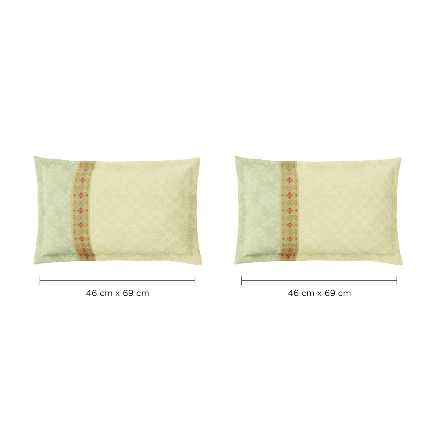 Spaces presents the Summer Carvan Double Bedsheet Set, designed to bring freshness, comfort, and everyday elegance to your bedroom. Made from 100% cotton with a smooth 132 TC percale weave, this bedsheet offers a breathable and super soft feel that is gentle on the skin and ideal for daily use.The bedsheet measures 228 x 274 cm (90 x 108 inches), providing ample coverage for double and queen-size beds, while the two matching pillow covers (43 x 68 cm / 17 x 27 inches) complete the coordinated look. The breathable cotton fabric supports airflow, helping maintain a comfortable sleep environment.Finished with a digitally printed ornate pattern in a calming LIght Green shade, this bedsheet adds a fresh and lively appeal to your space. Easy to care for and designed for everyday comfort, the Spaces Summer Carvan Bedsheet Set combines trusted quality, style, and practicality in one essential bedding solution.