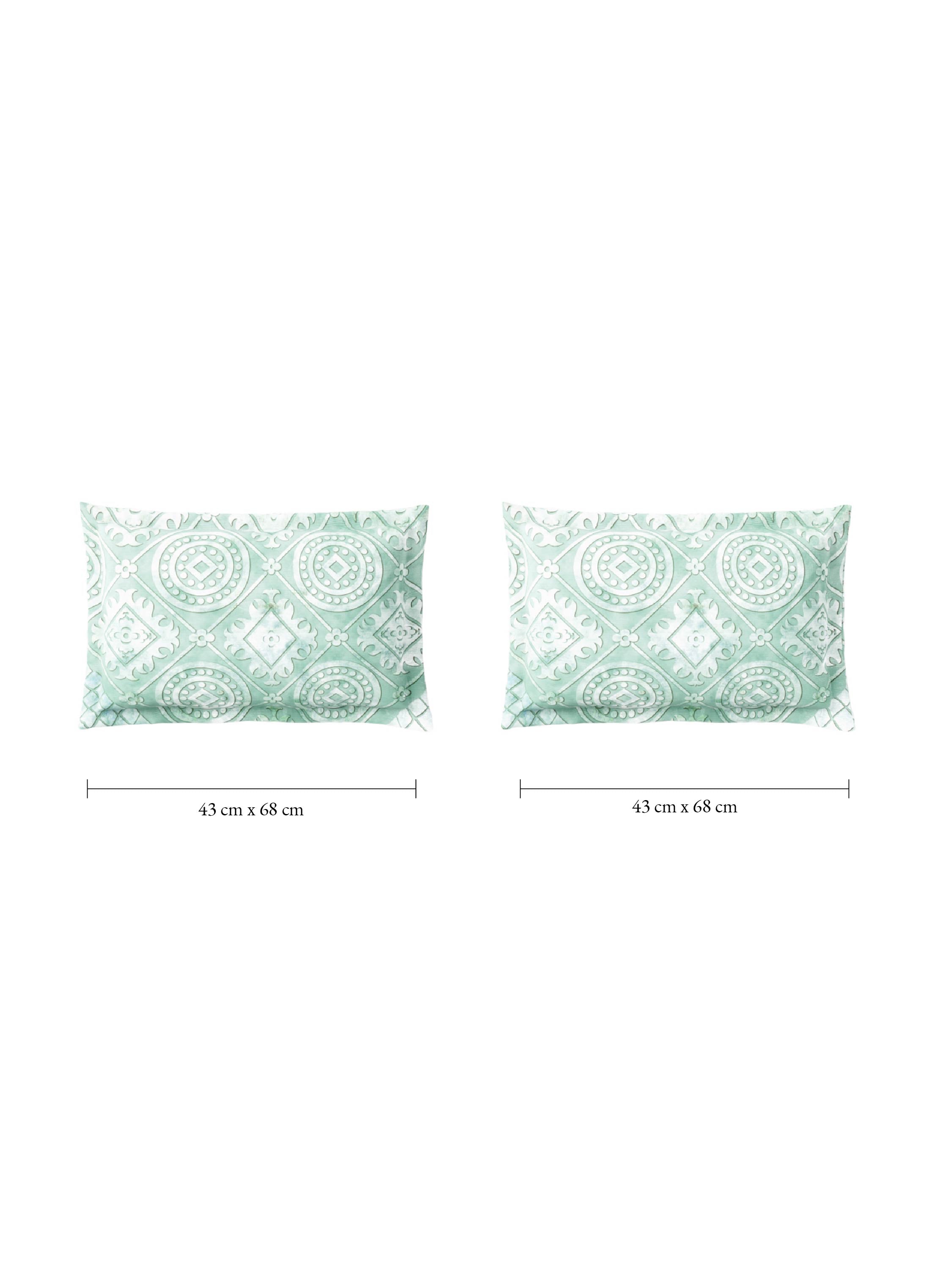Zera Hygro Cotton 233 TC Percale Weave Ornate Print Large Bedsheet with 2 Pillow Covers, Light Teal