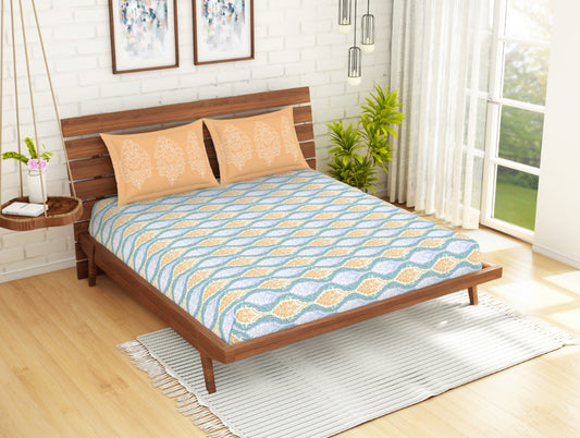 Aqua 100% Cotton Fitted Elastic Bedsheet - Atrium by Spaces